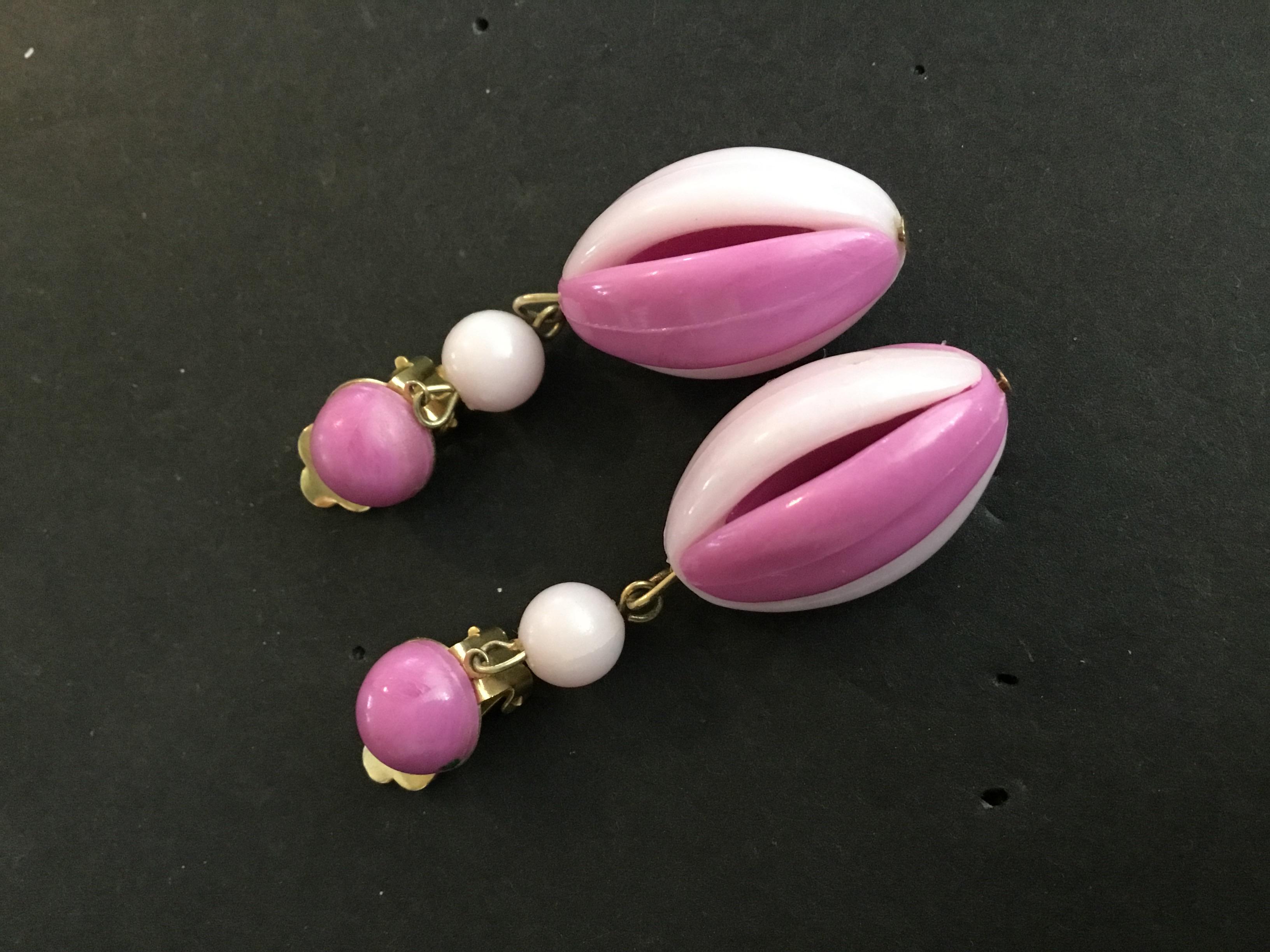 Vintage clip on dangle earrings Lucite type
