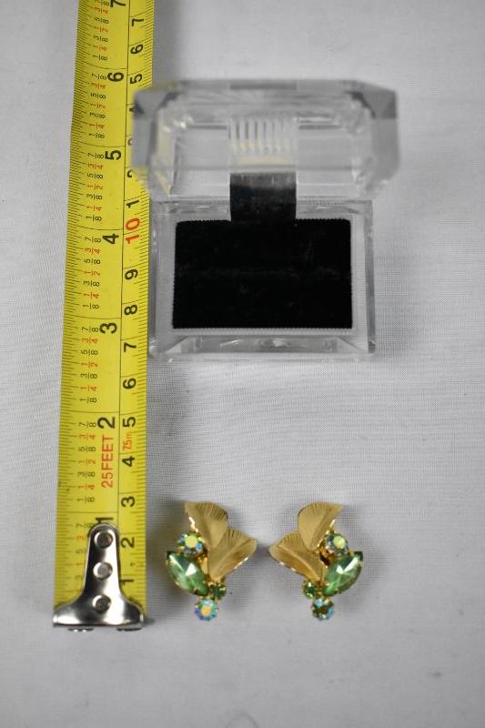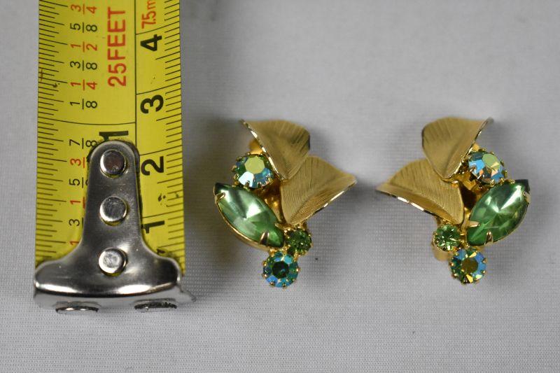 Vintage Clip on Earrings, Gold Toned with Green & Blue Stones