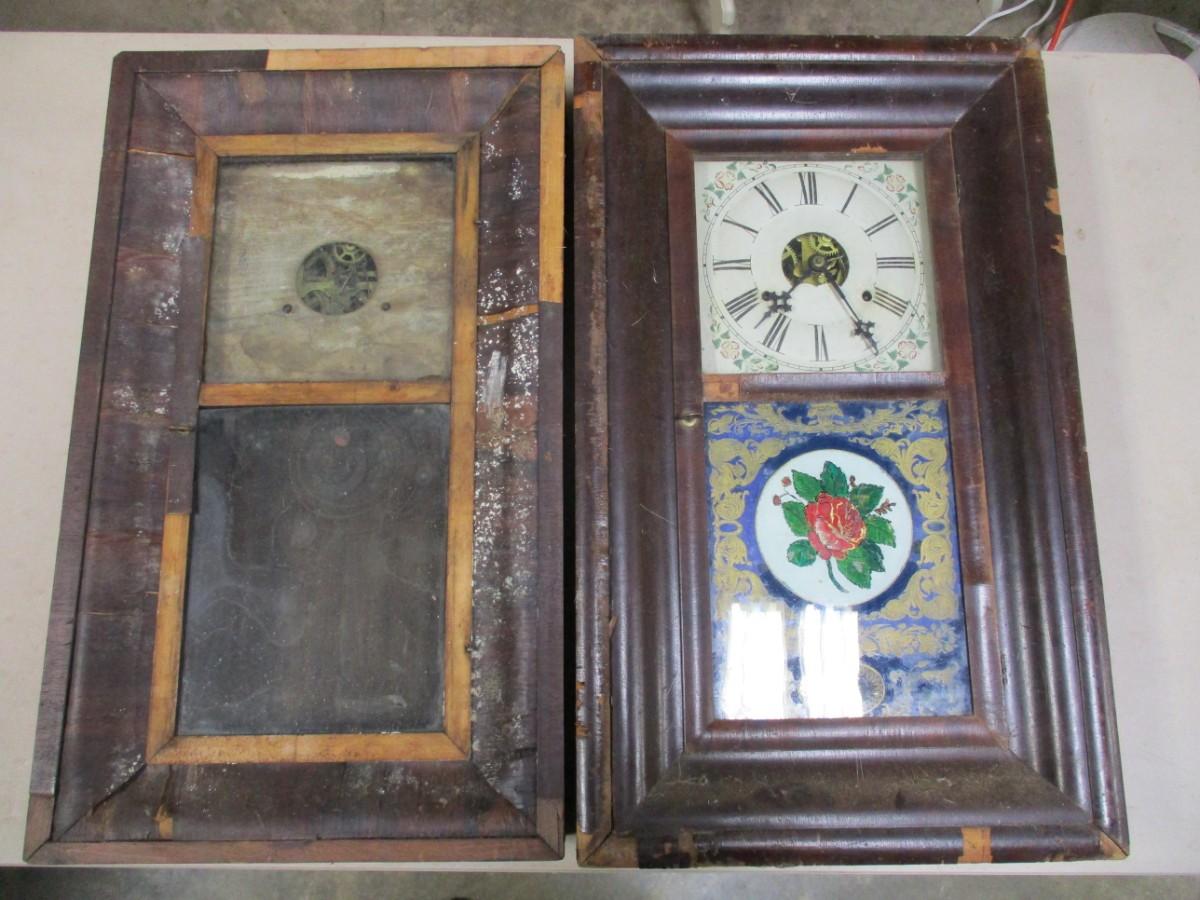 Vintage Seth Thomas Reverse Painted Glass Wood Clock Cases Lot 2