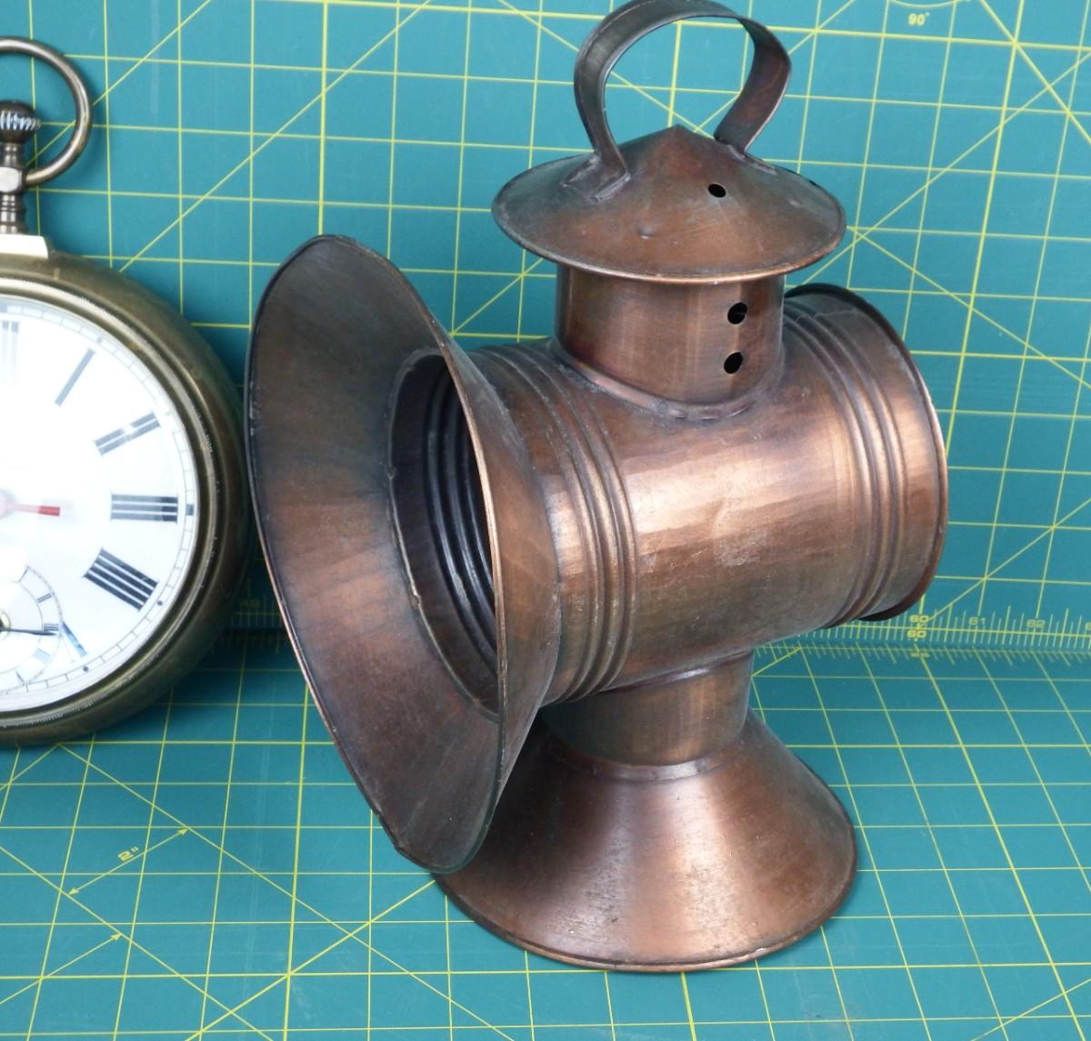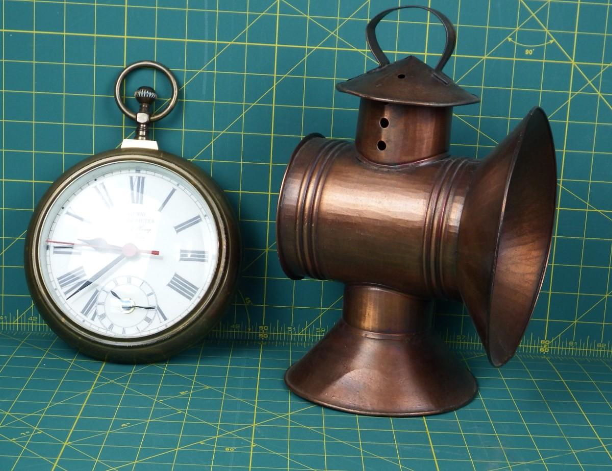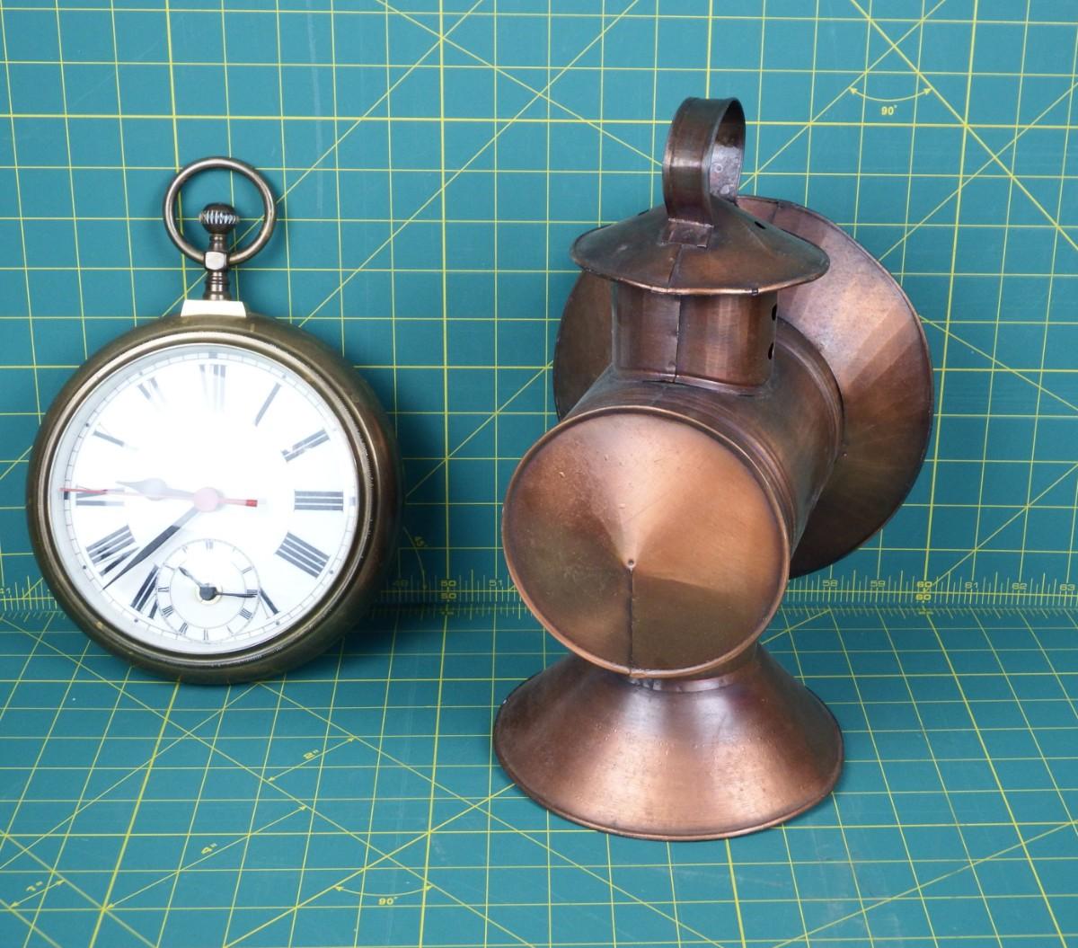 Vintage Clock & Railroad Lantern Décor