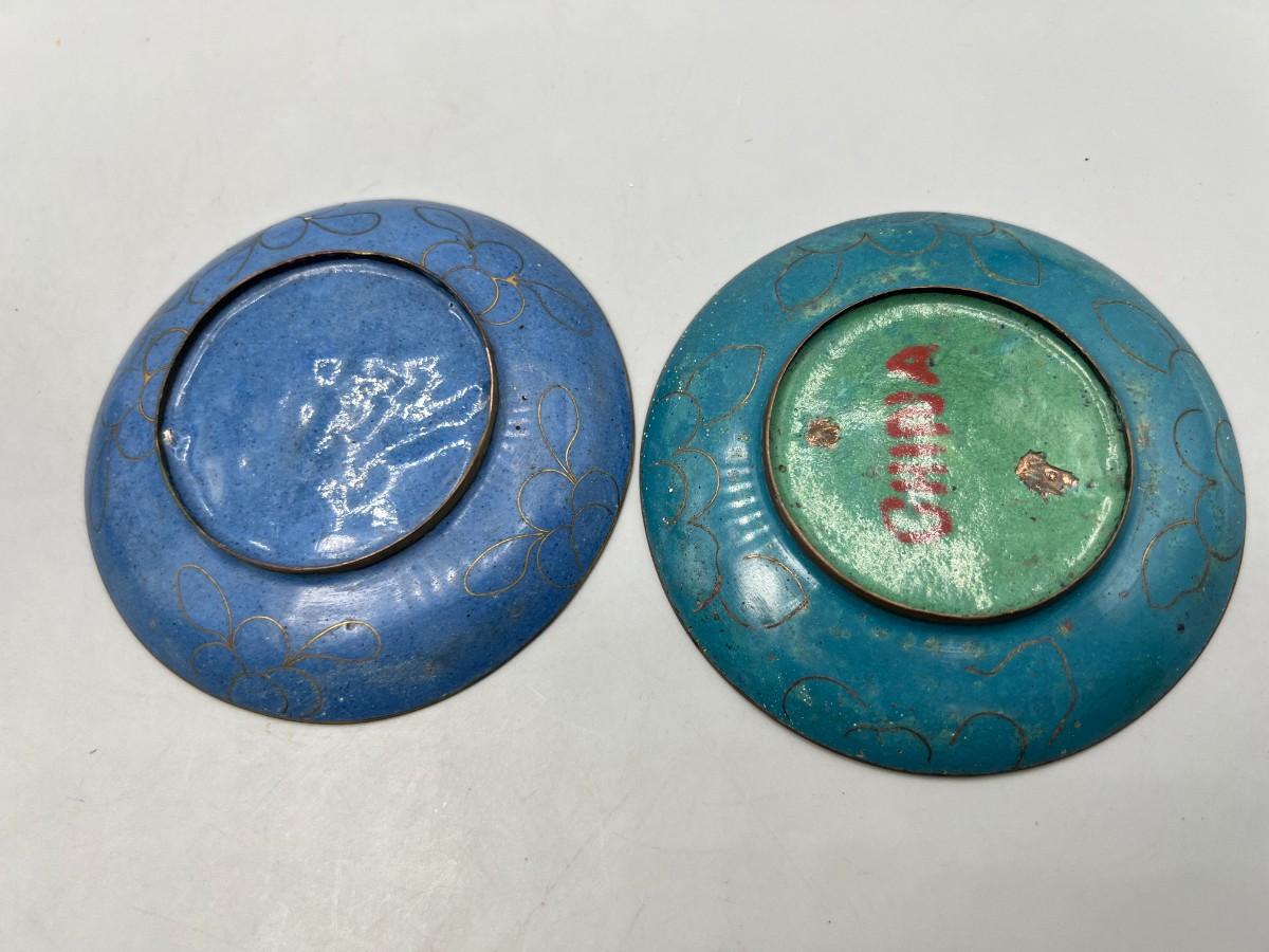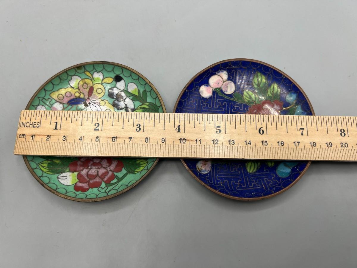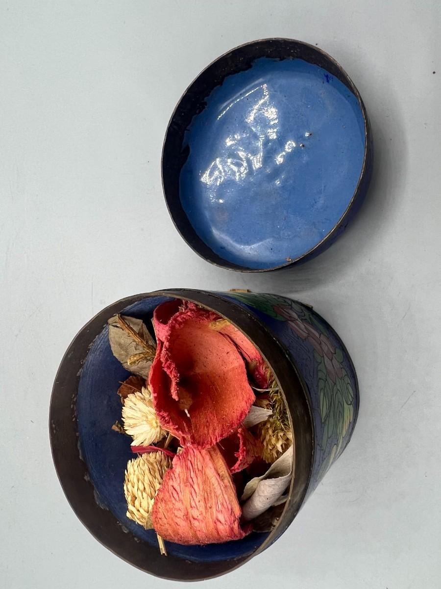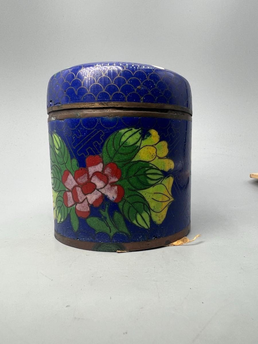 Vintage Cloisonné Metalwork Oriental Floral Designs Lidded Jar & Saucers