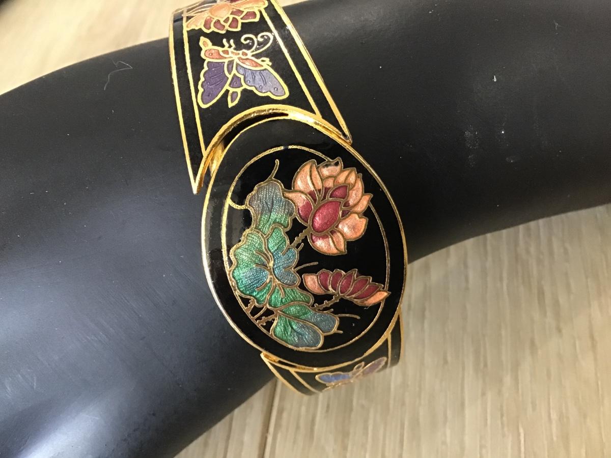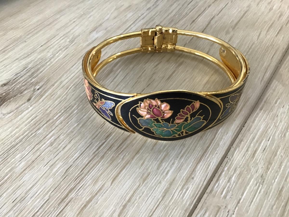 VINTAGE CLOISONNE ENAMEL BANGLE BRACELET GOLD TONE Honged