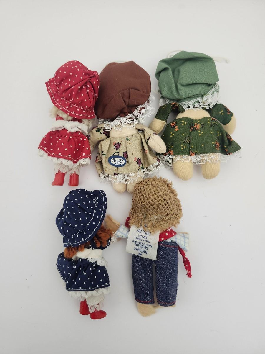 Vintage Cloth Mini Rag Dolls Fabric Dolls Bonnet Dresses Handmade Style Mixed Lot