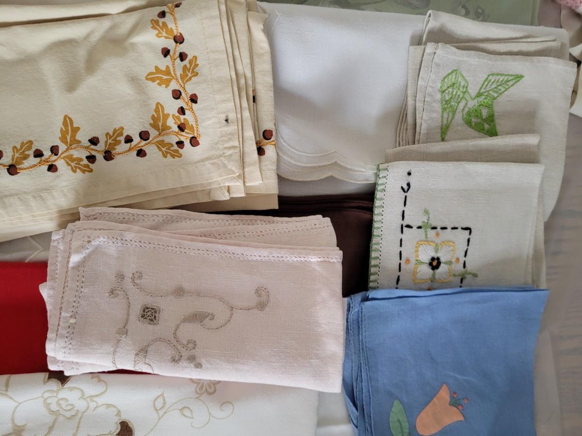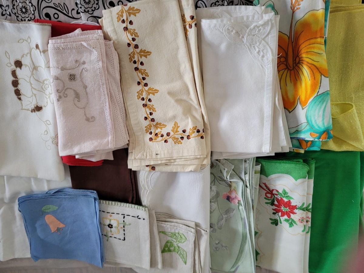 45 plus vintage cloth napkins. Assorted styles and colors.
