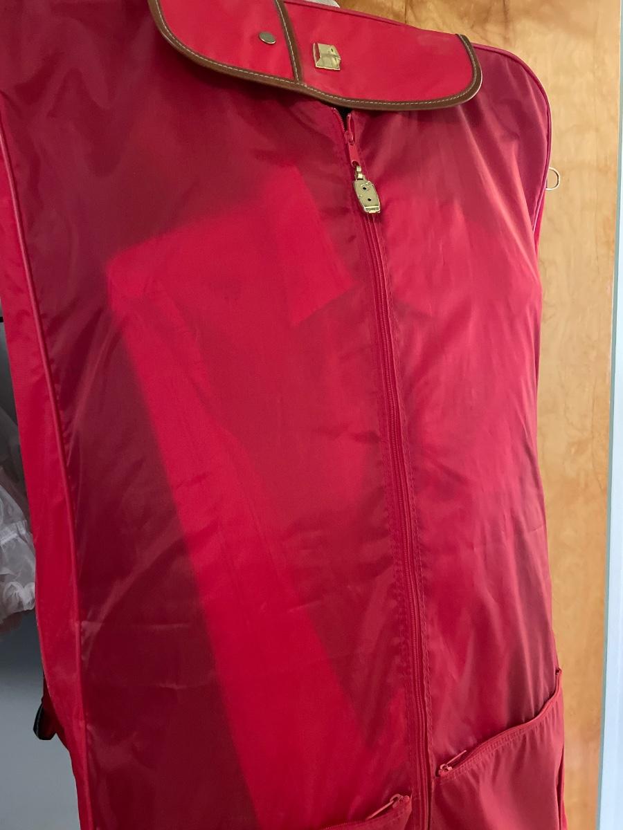 Includes red garment bag
