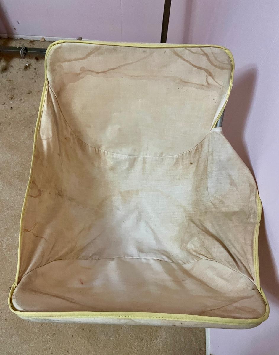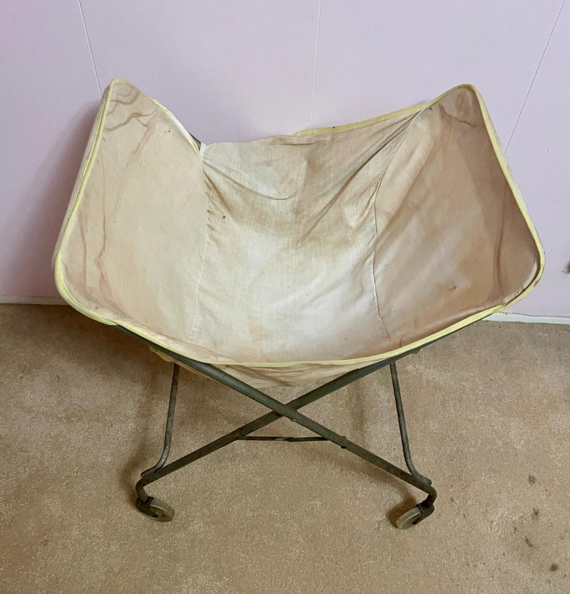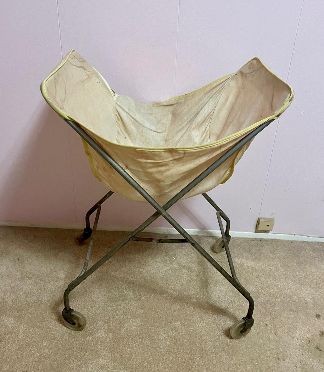 Fabric basket needs a cleaning and minor hem repair, cart is in good condition.