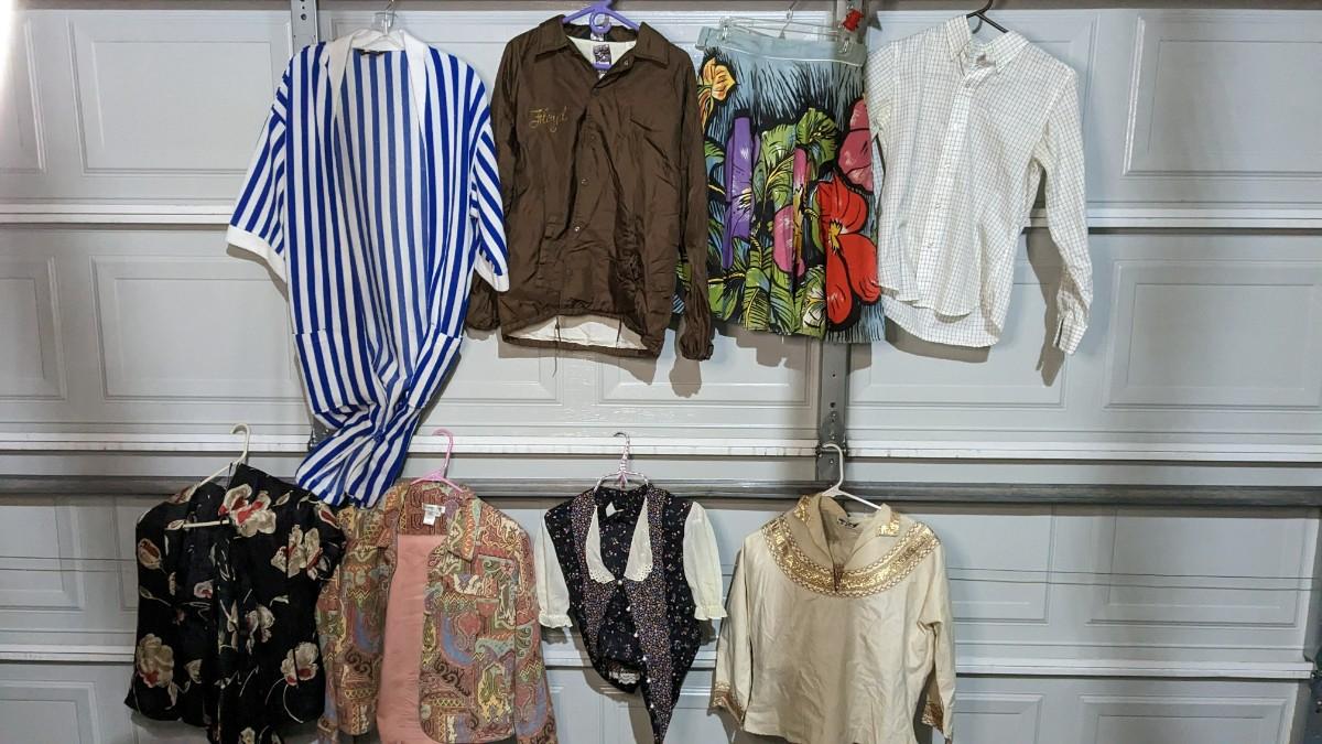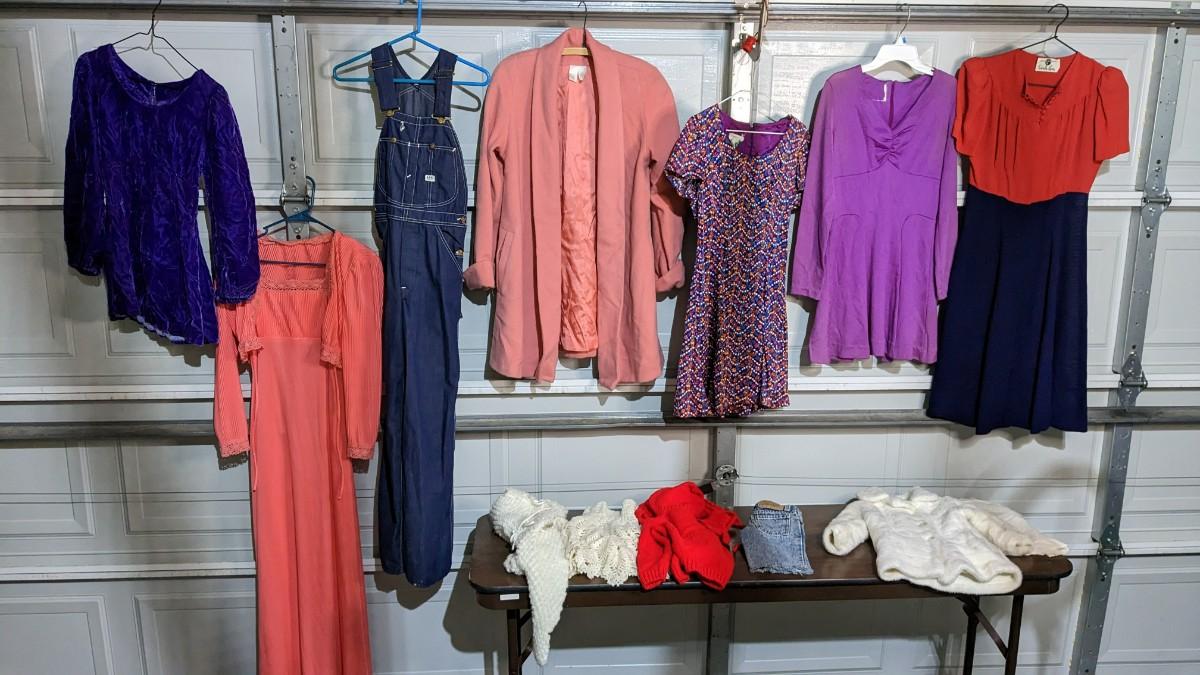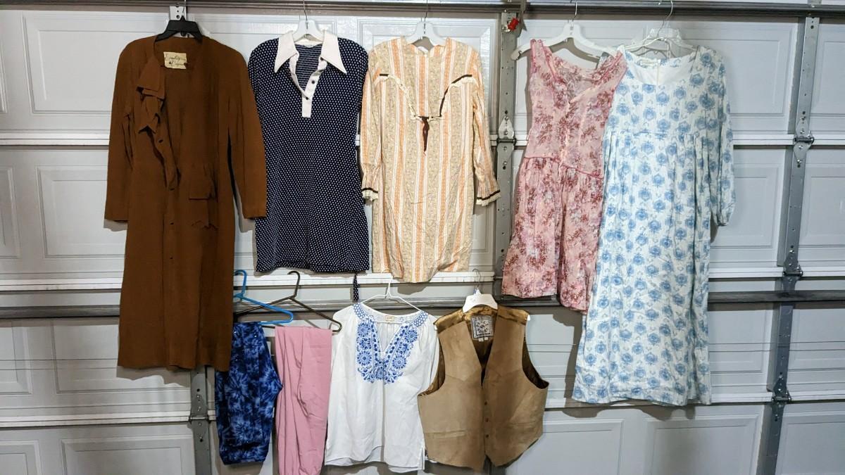 a nice large amount of vintage clothing, designer to handmade. Includes kids, tween, womens and mens. Includes sets, coats, and more! All in good shape unless noted in photos. Some fine items in this one, don't miss those kids Levi orange tabs! 2604