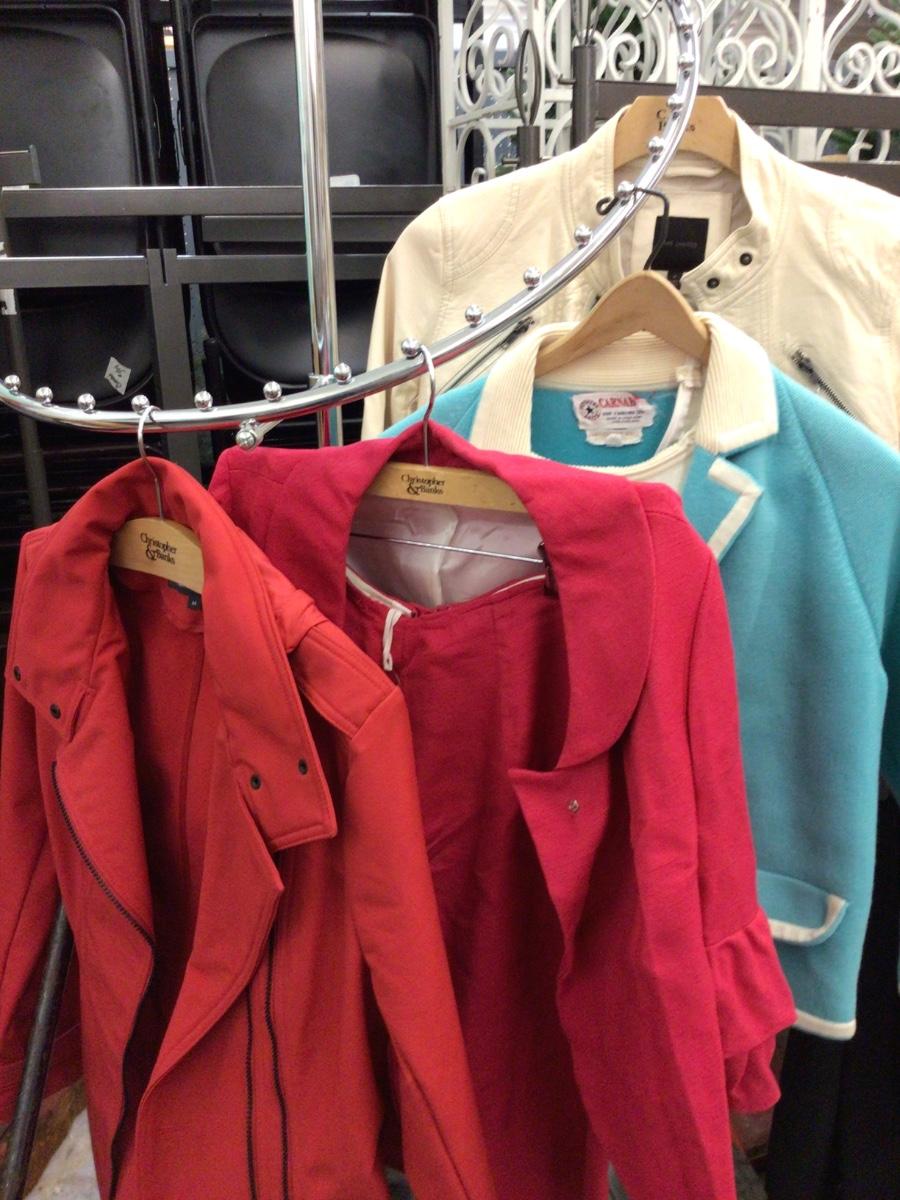 You get Kenneth Cole Reaction Red Jacket, pink skirt and jacket, Carnab fashion blue and white skirt and jacket and a The Limited white leather jack
