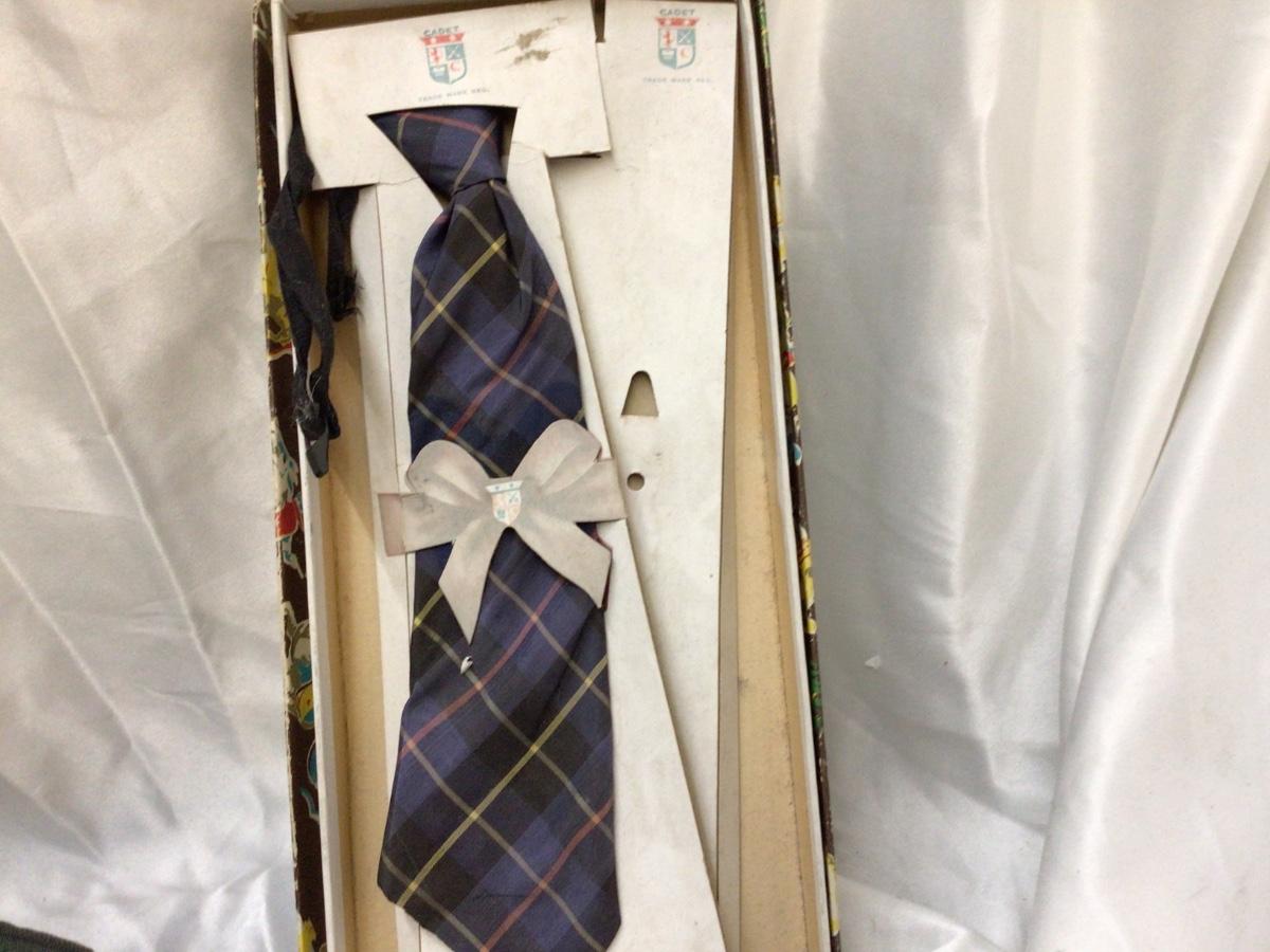 You get a great child’s clip on tie, in the box. There is also a military cover or hat. Also two coin purses, and a wallet.