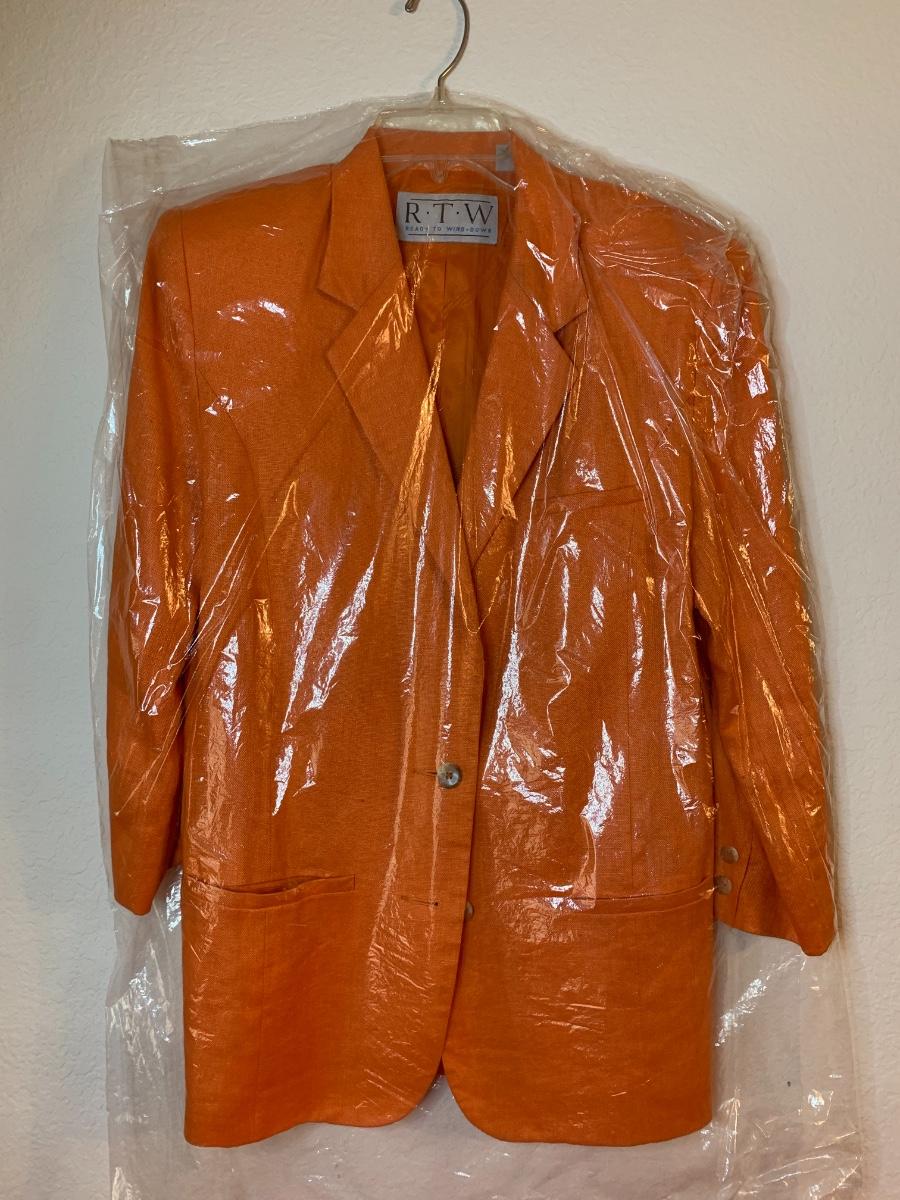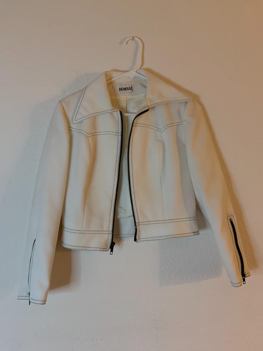 An assortment of vintage women's clothing including one matching suit set, a blouse, jackets and more. Including brands like Joanne Charr, Domani, Florence Alper and Ready to Wind Down. All clothing in great condition with the exception of the white Domani jacket which does have some light staining.