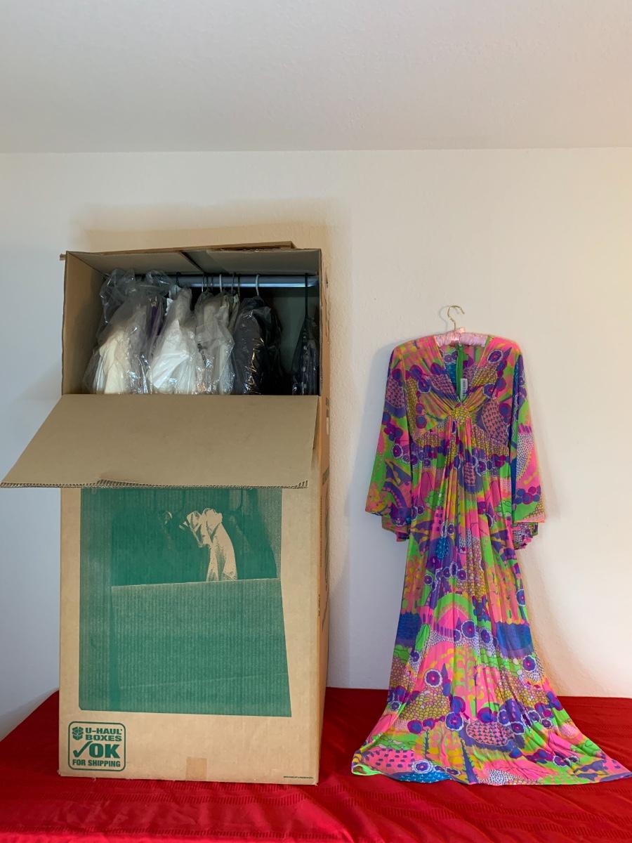 Includes a gorgeous colorful Robert David Morton dress, an Eva Blue dress, New sport garment, Copyright garment, another gorgeous purple suede skirt with elastic waist (no name) and more! All in excellent condition