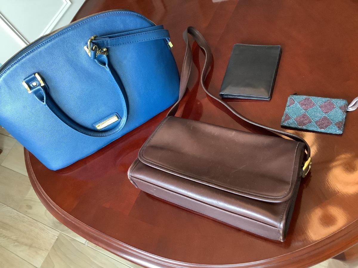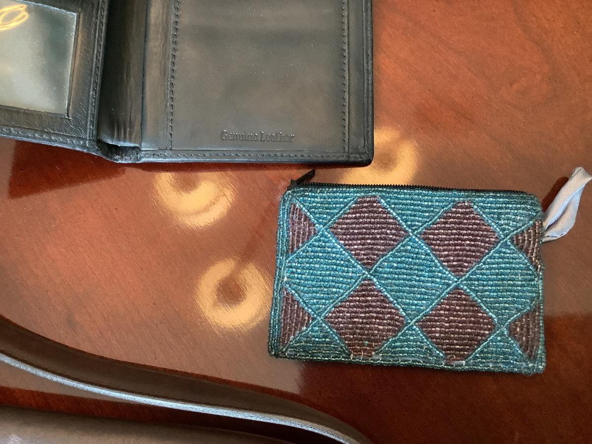 Vintage Coach leather brown purse, Joy Iman, black leather wallet, beaded zip
