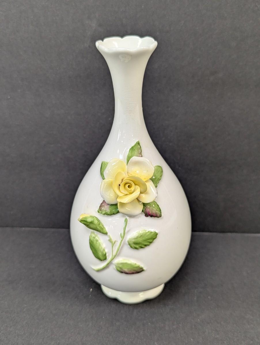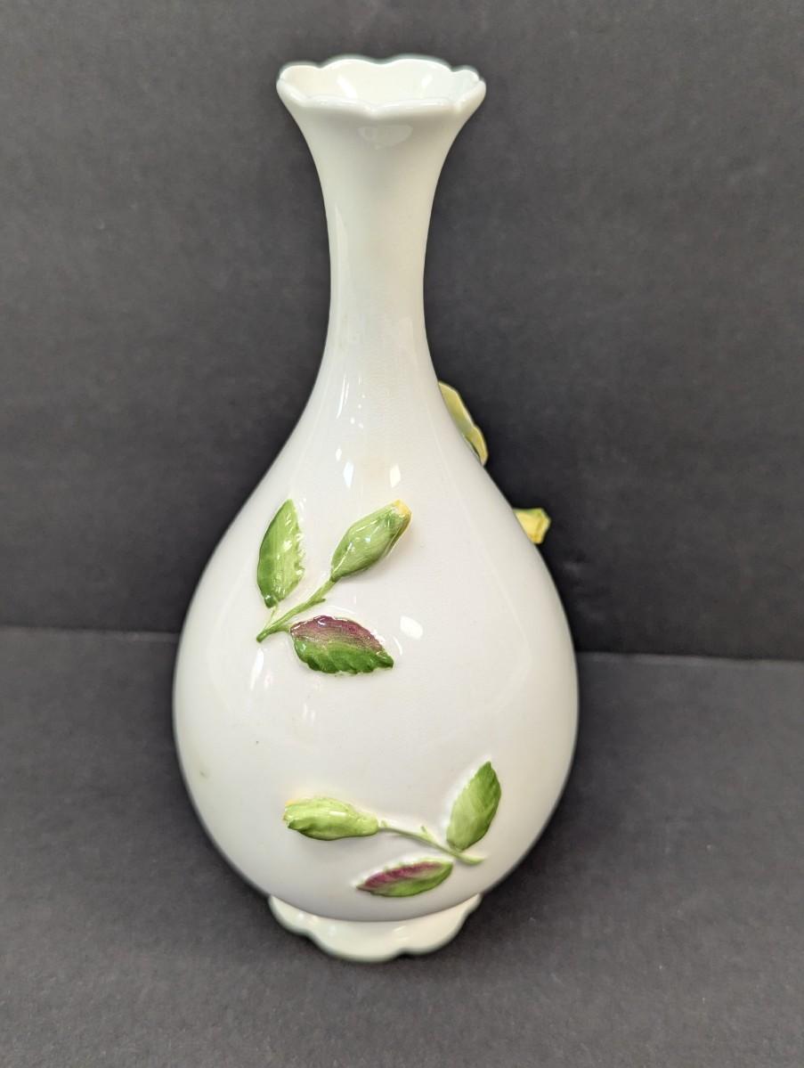 Vintage Coalport Bone China Vase With Relief Rose Flower Design