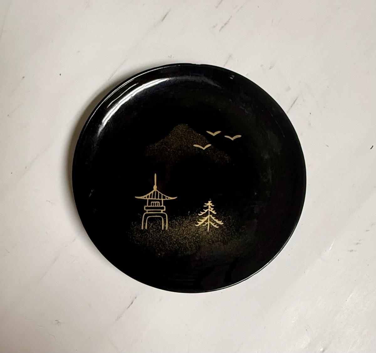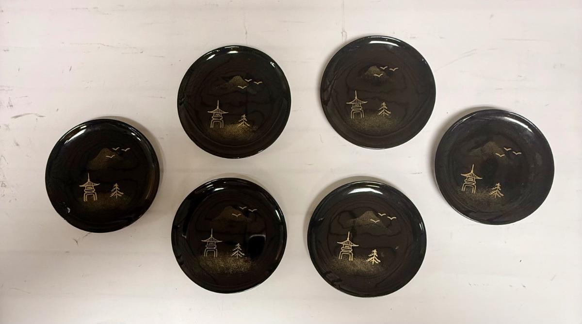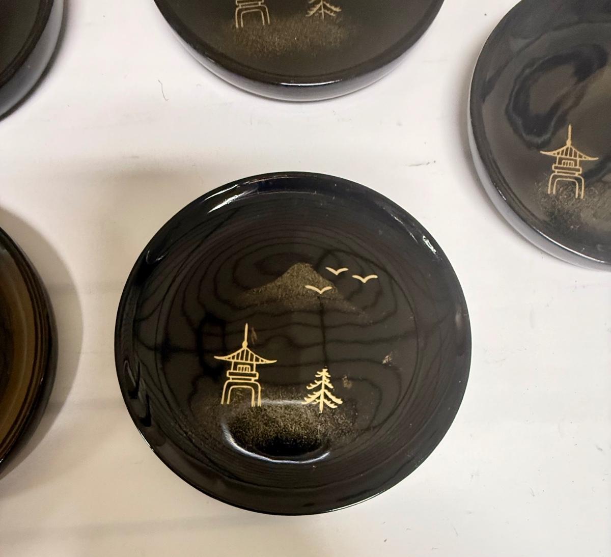 Vintage Japanese Black Lacquerware Coaster Set 1950's