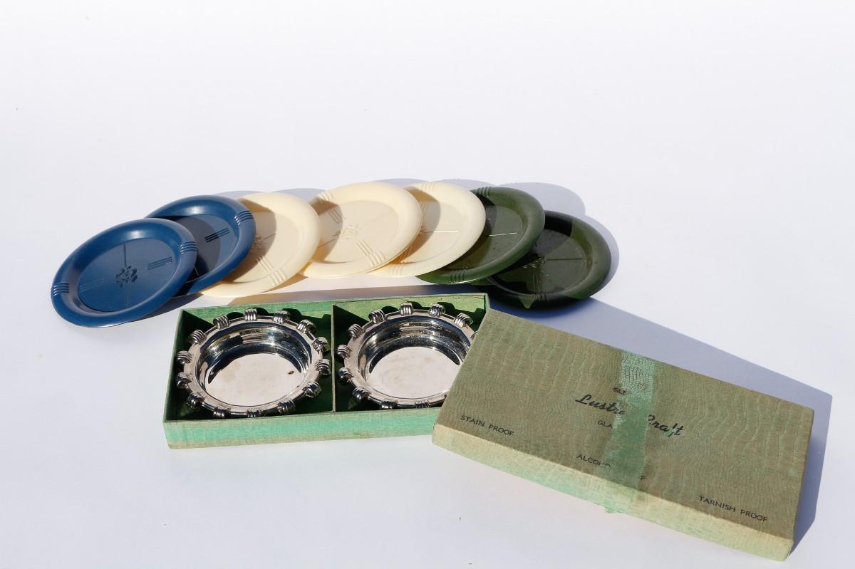 Vintage Coasters and Ash Trays, 1940s	New, in Original Box (Owens -Illinois Co.)