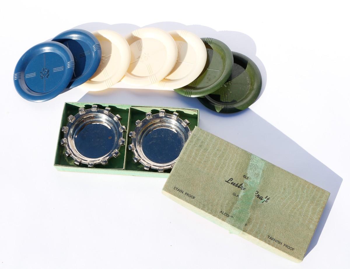 8 Coasters (made of early plastic) Made at Owens-Illinois Glass Co. in Glassboro, NJ 1940s
