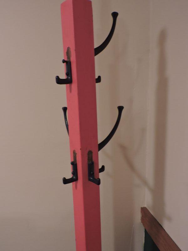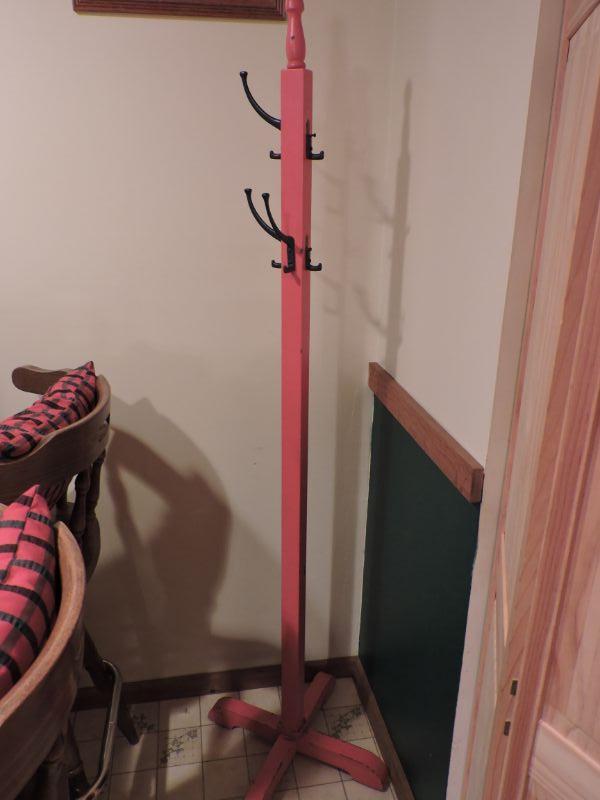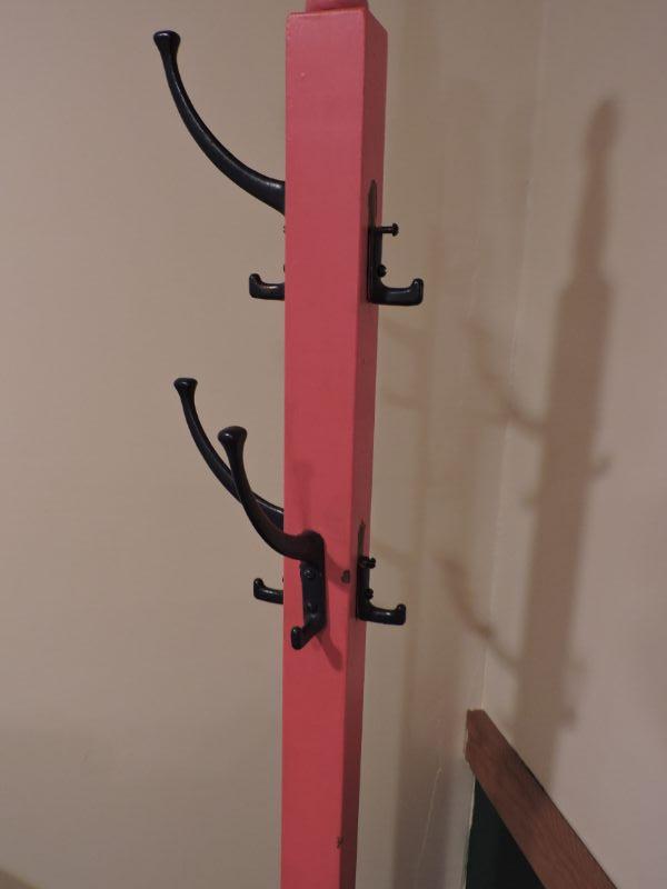 Vintage coat stand painted red. Please not some of the hooks are broken. **Please read Terms and Conditions before placing a bid. Pick up is Sunday, September 15, 2019 from 11am to 4pm and Tuesday, September 17 from 4pm-7pm in Sicklerville. All sales are final. All sales are as is, where is. Please review all photos. Any props included in photos are not included in listing. All measurements are approximate.