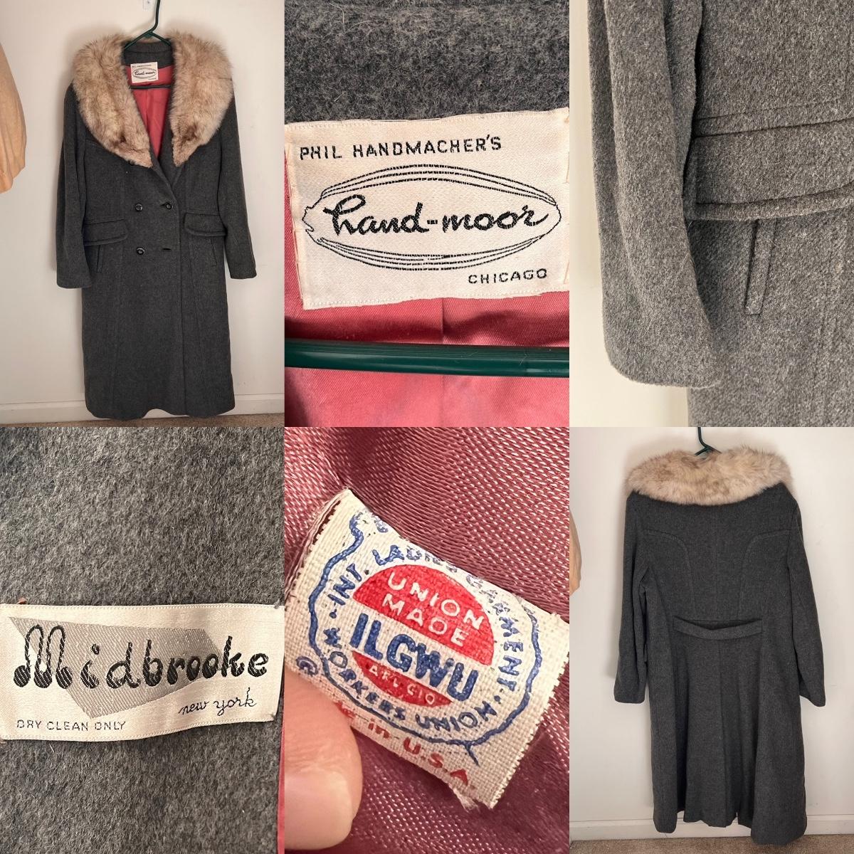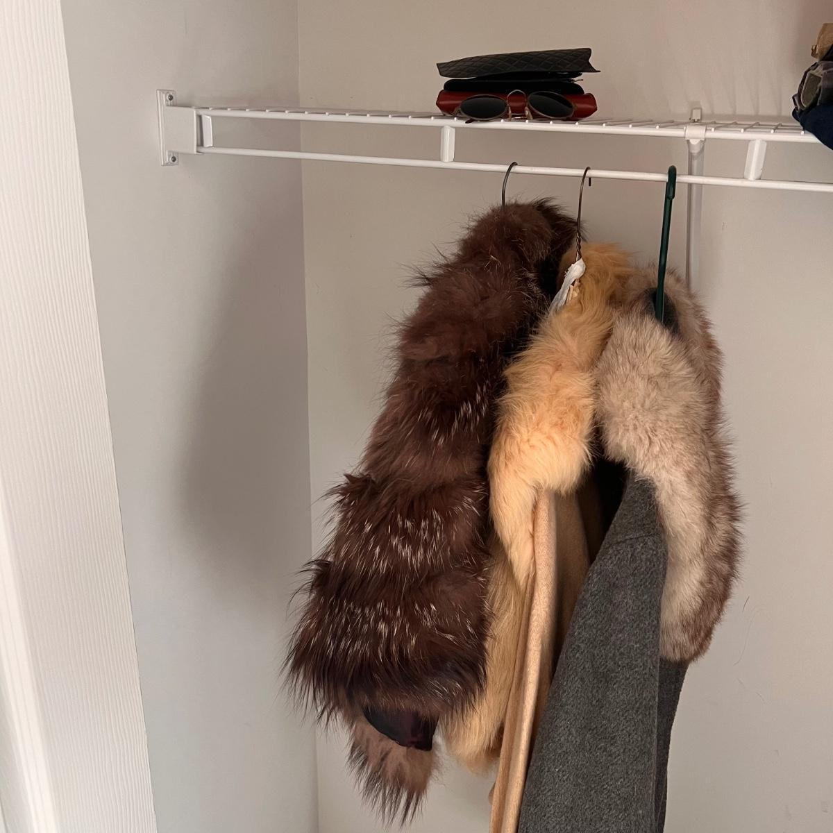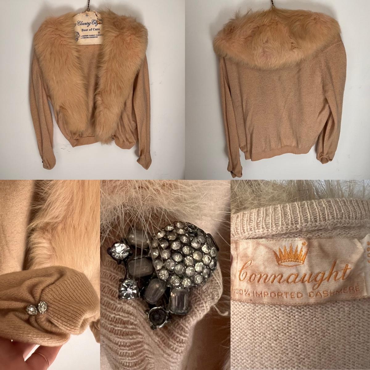 Lot includes four fur (cannot confirm if it’s faux or real) coats and four pairs of unique glasses. The first, darker brown fur shawl appears to be hand made by Little River Furriers. The second shawl is a lighter brown and made by Pinto Miami Beach. The third sweater with a fur collar has a tag that reads Connaught, 100% imported cashmere. The last coat shown is grey and has several different labels - see pictures included. There are no clear sizes on these coats, but they appear to be size large. Lastly, the glasses appear to be stamped by different brands including Cosmopolitan and Renauld. Shipping available.