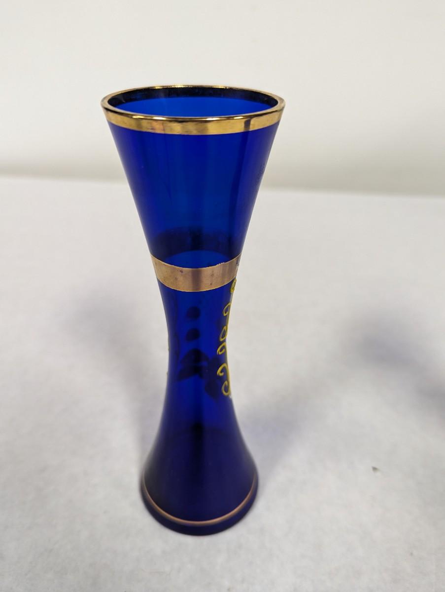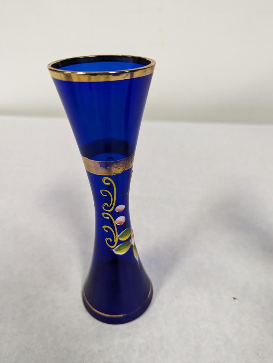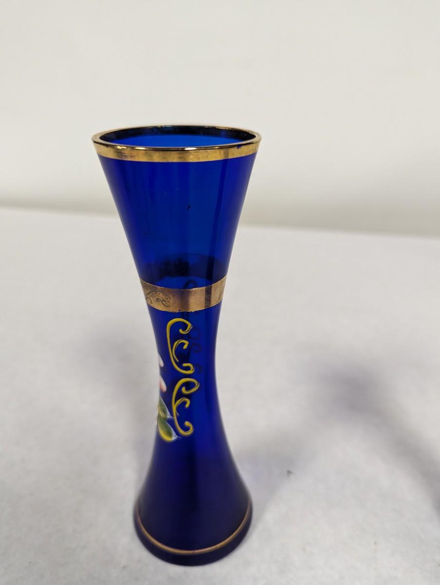 Vintage Cobalt Blue Enamel Floral Design Vase With Gold Trim Choice 2
