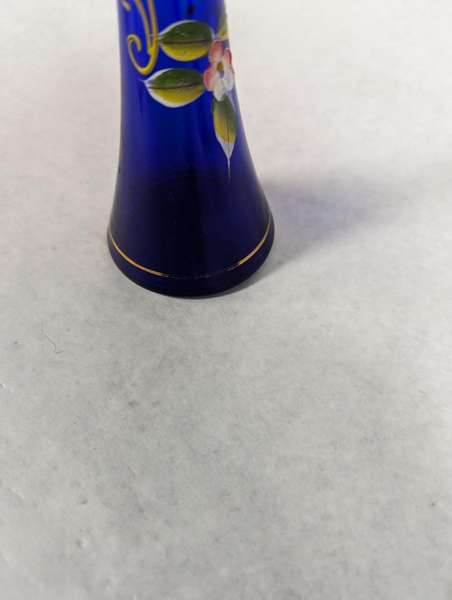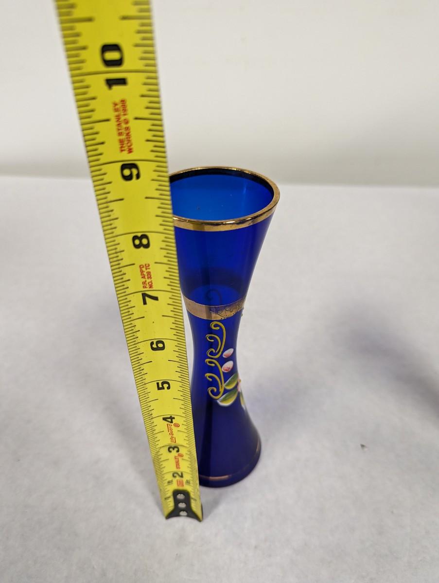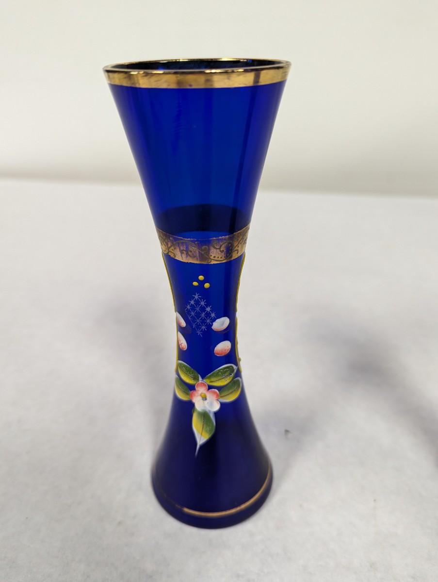 Vintage Cobalt Blue Enamel Floral Design Vase With Gold Trim Choice 2