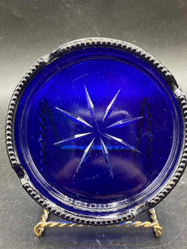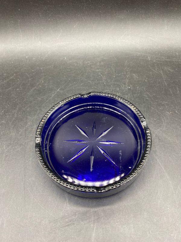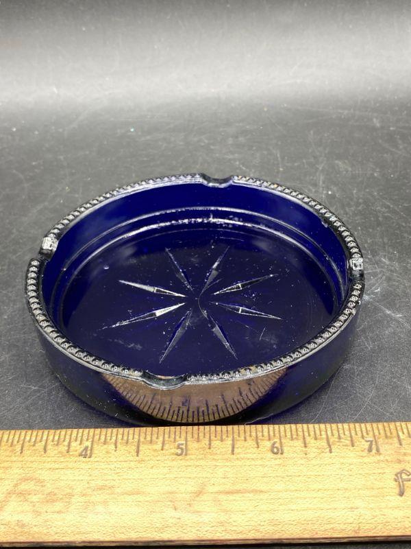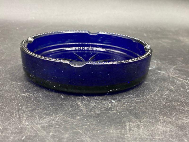 Vintage Cobalt Blue Glass Ashtray YD#016-1120-00045
