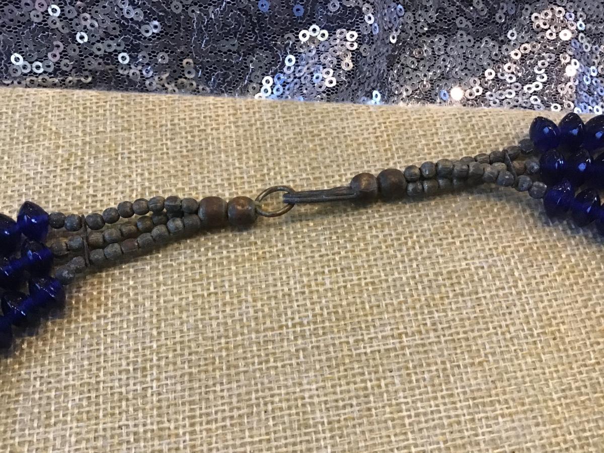 Vintage Cobalt Blue Glass Bead NECKLACE. 3 Strand. Beautiful π