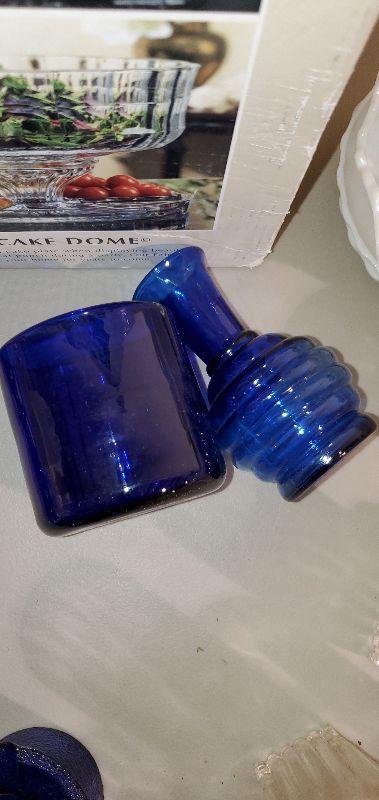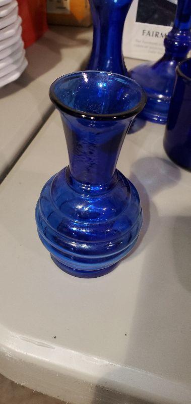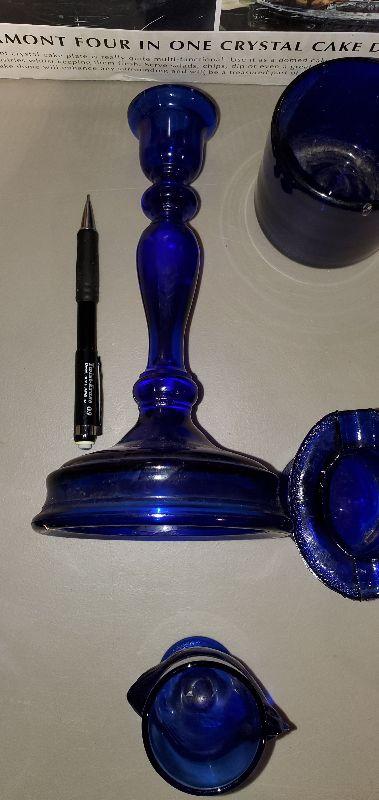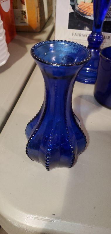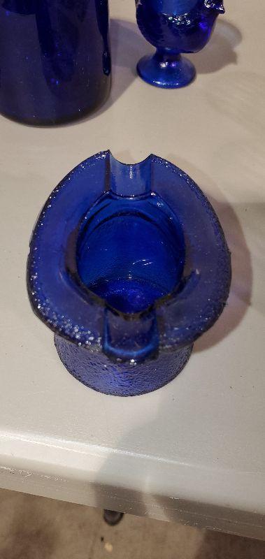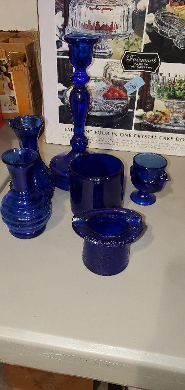 Vintage Cobalt Blue Glass Lot (6 pieces) Vase Vases Ashtray Chicken Egg Cup Candlestick (item #46)