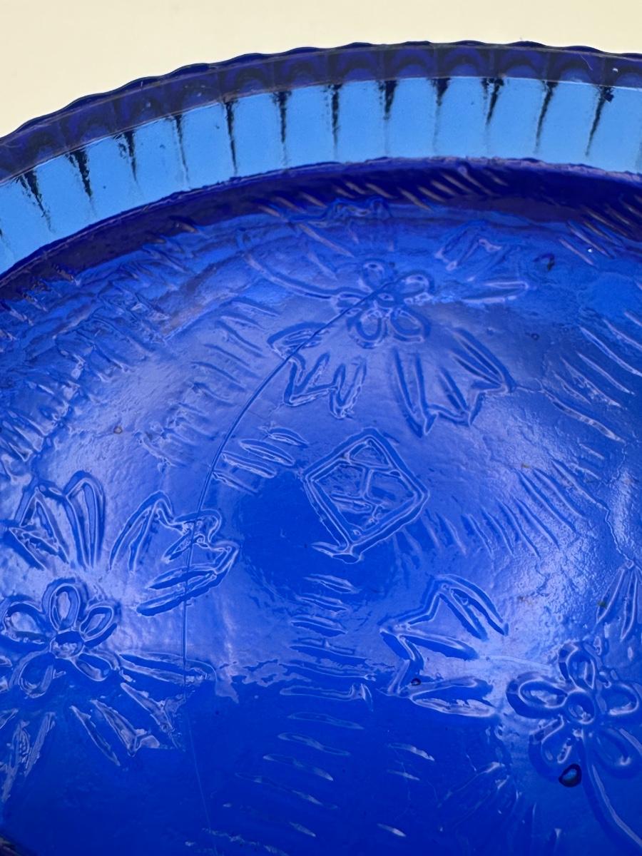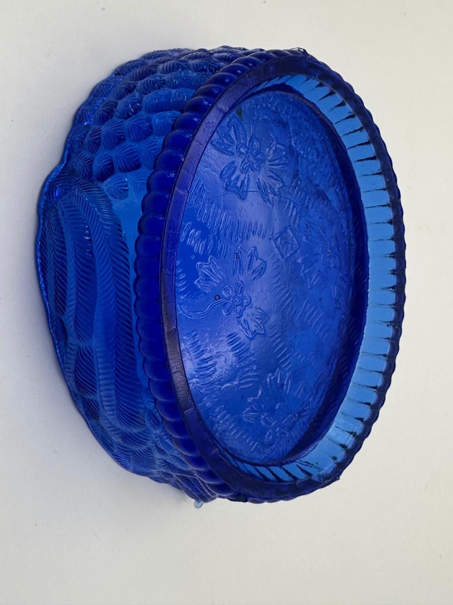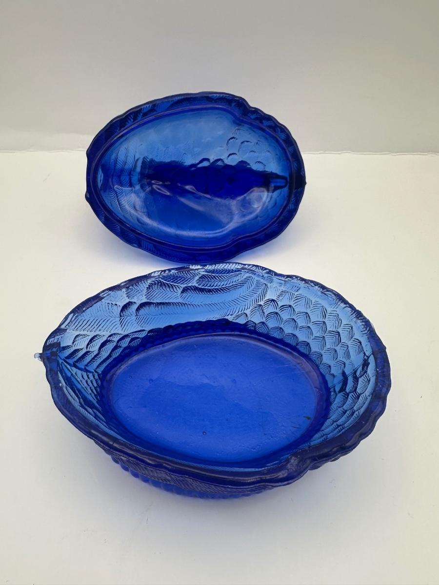 Vintage Cobalt Blue Glass Swan on Nest Covered Candy Dish
