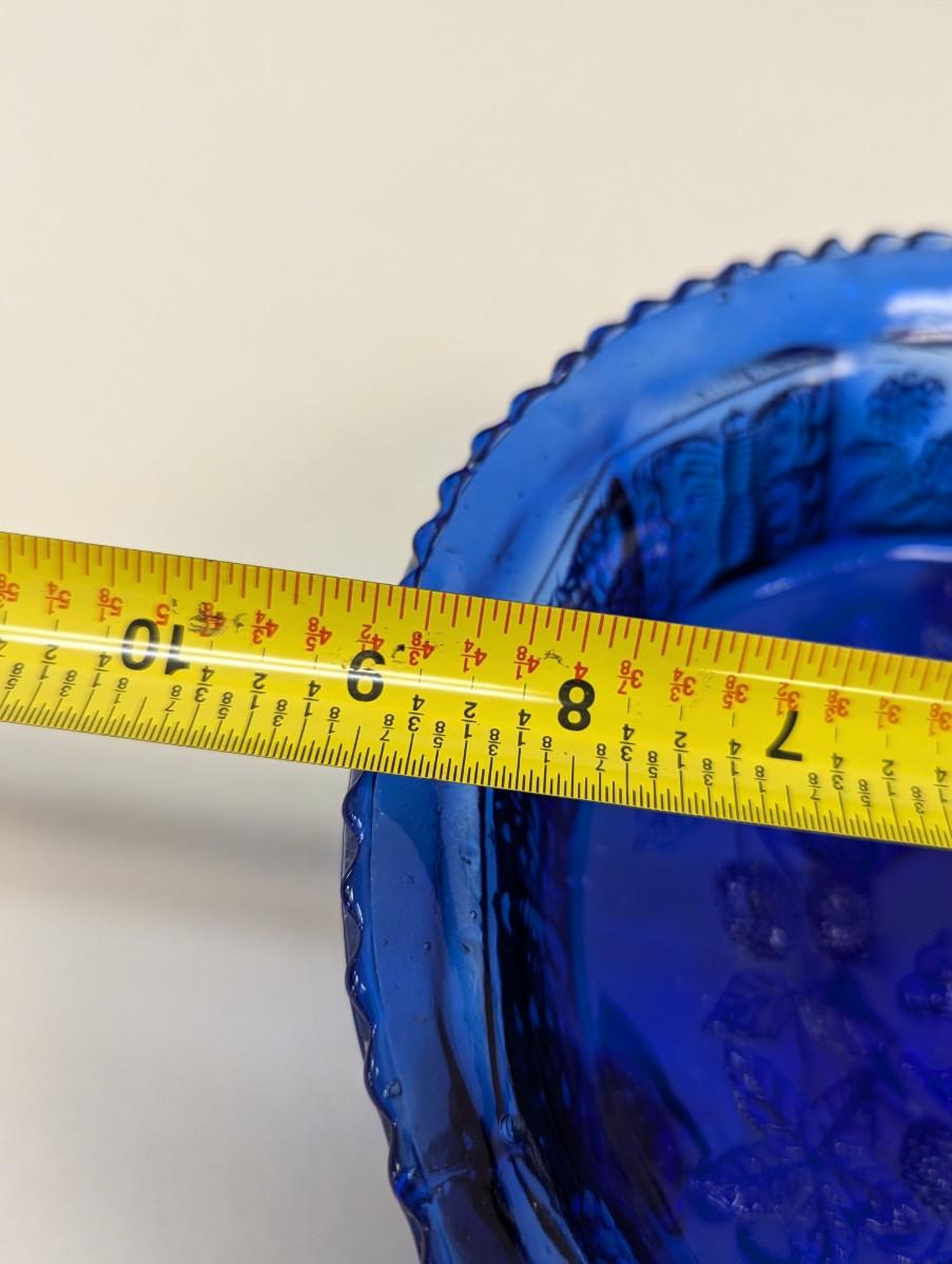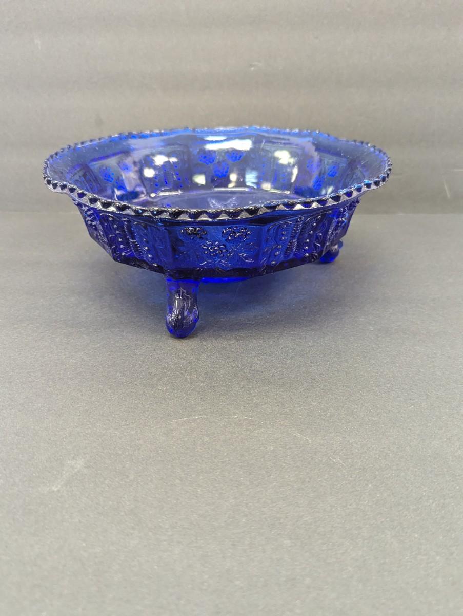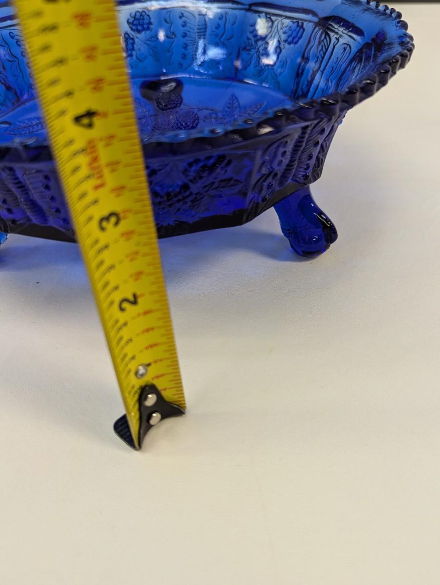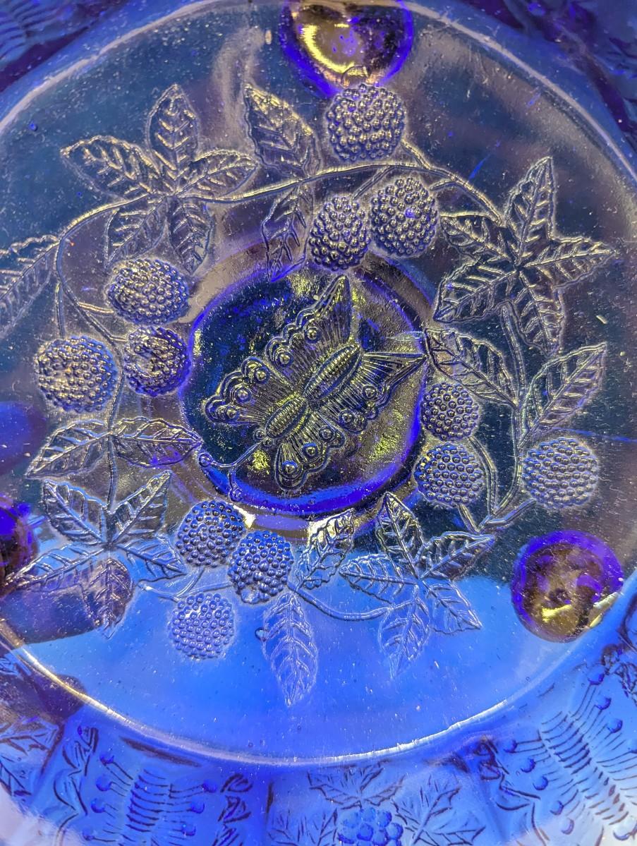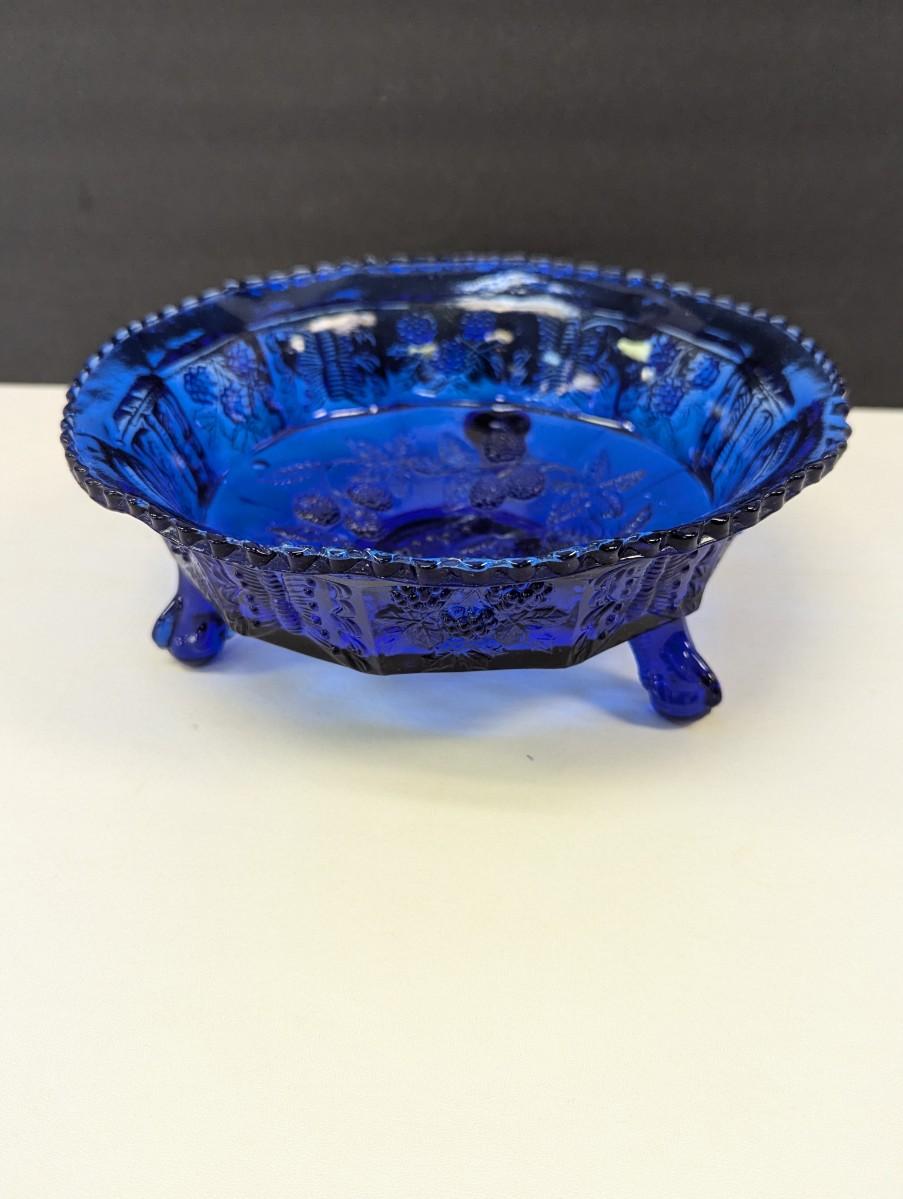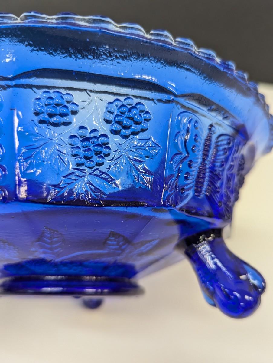 9" Vintage Cobalt Footed Bowl With Raised Butterflies & Berries