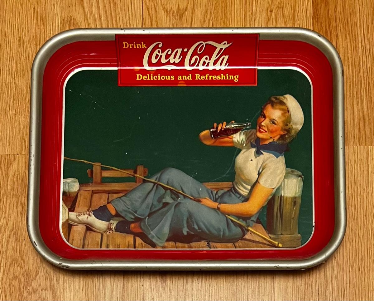 Vintage Coca Cola 1940's Sailer Girl Fishing Metal Tray