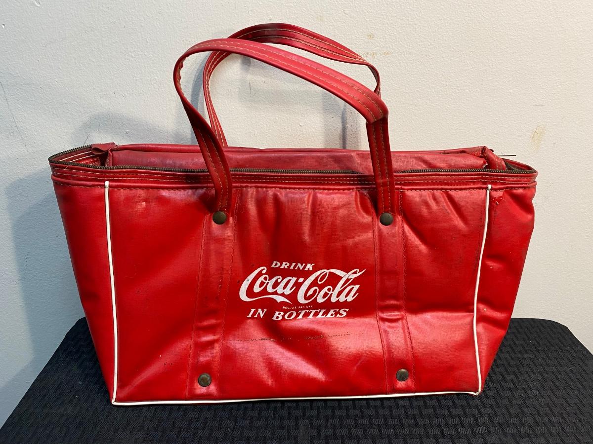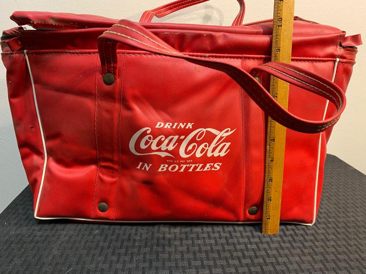 Vintage Coca Cola Travel Picnic Drink Cooler Bag, there is some vintage wear to the bag, but there is no significant damage and is in good vintage condition. Check pictures for more details and for sizing.