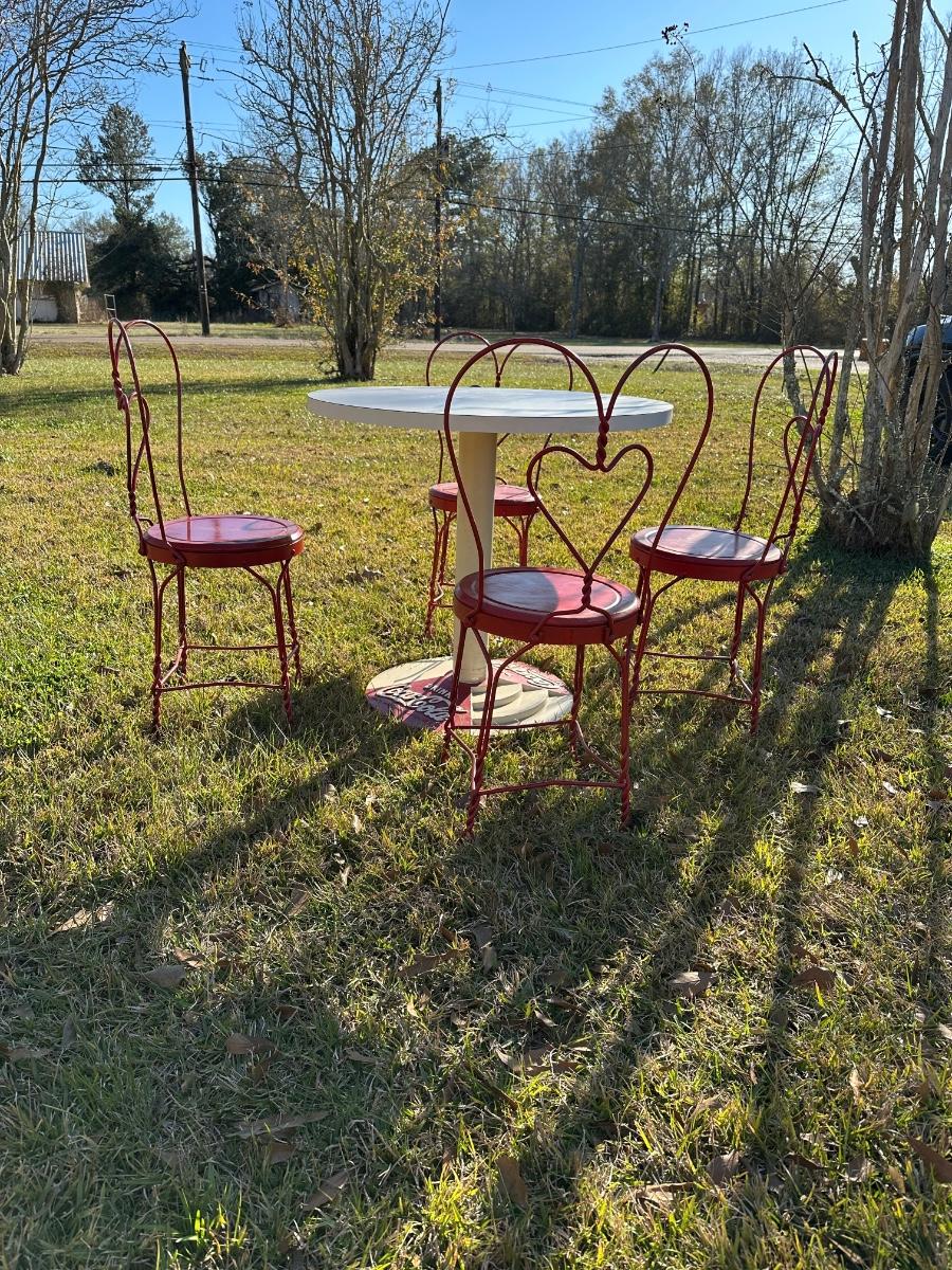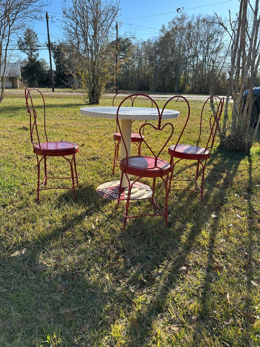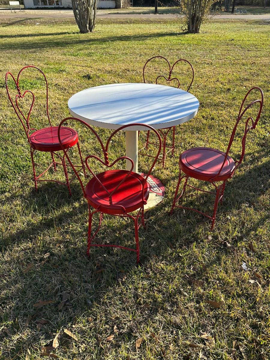 Vintage Coca-Cola Café Table w/ 4 Red Heart-Back Chairs – Retro Diner Set