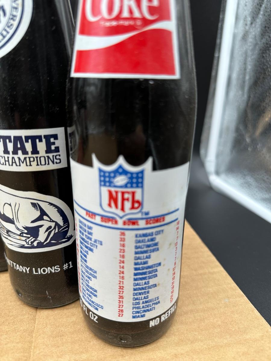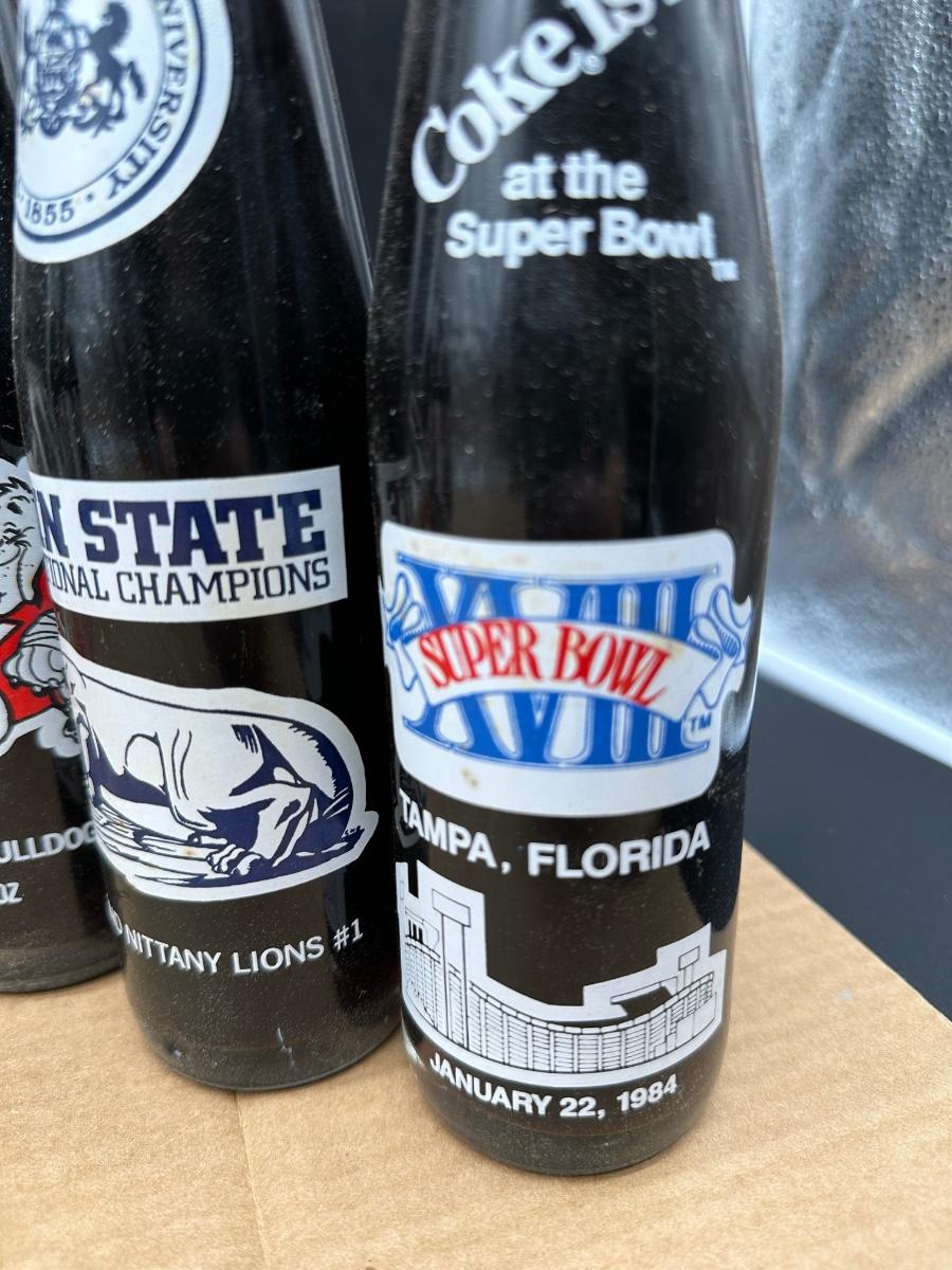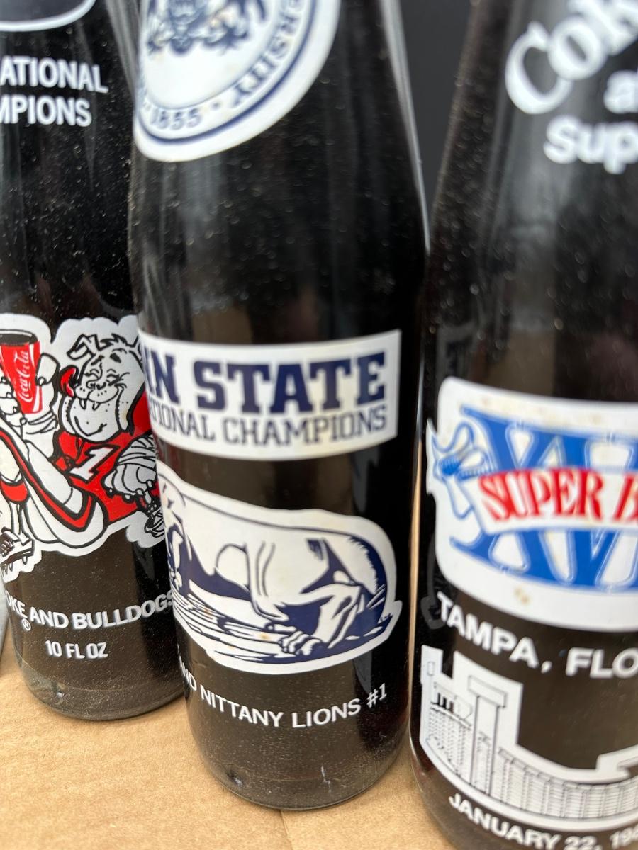 Vintage Coca-Cola College Football & Super Bowl Glass Bottle Lot w/ Carrier