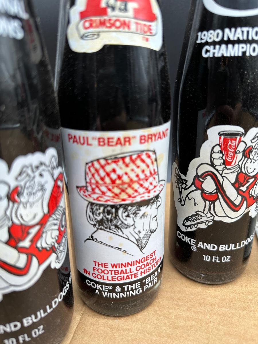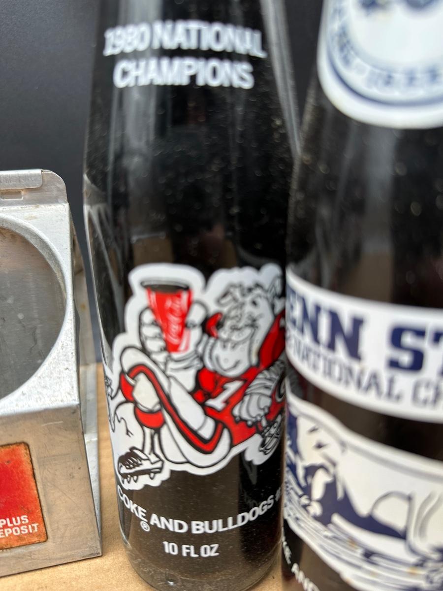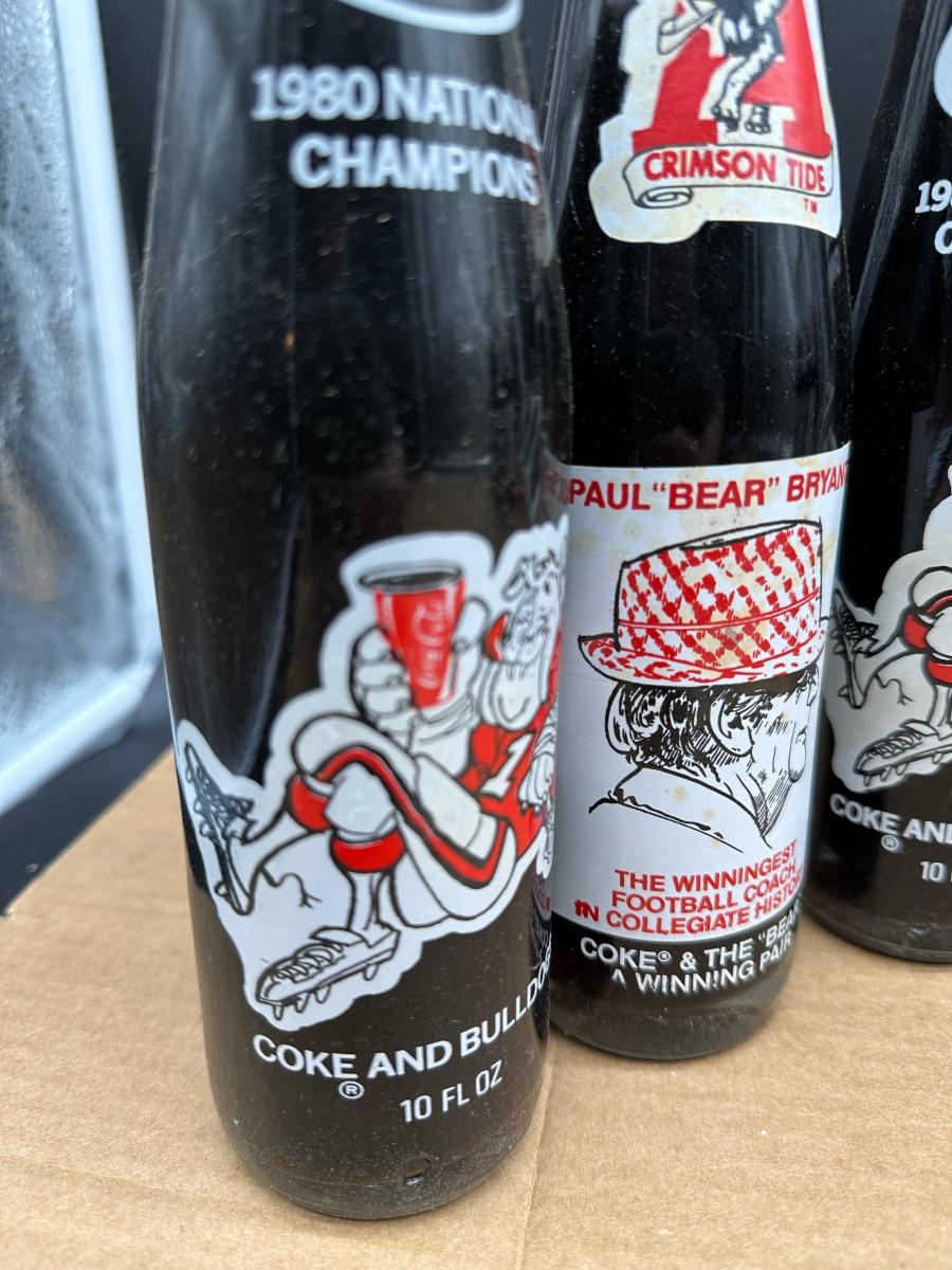 Vintage Coca-Cola College Football & Super Bowl Glass Bottle Lot w/ Carrier