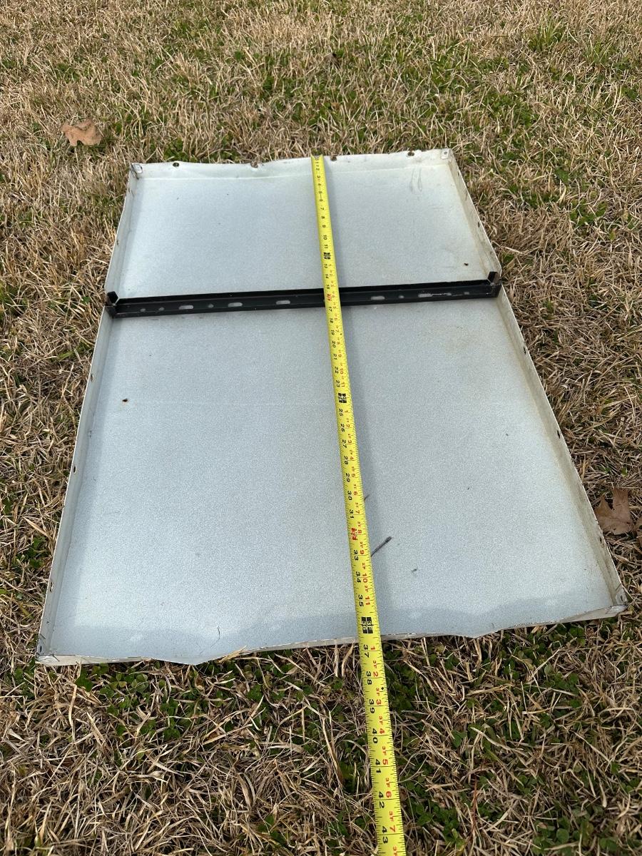This is a large metal sign measuring approximately 36” x 24” (see tape photos). Heavy gauge metal construction with factory folded edges and rear mounting bracket intact.