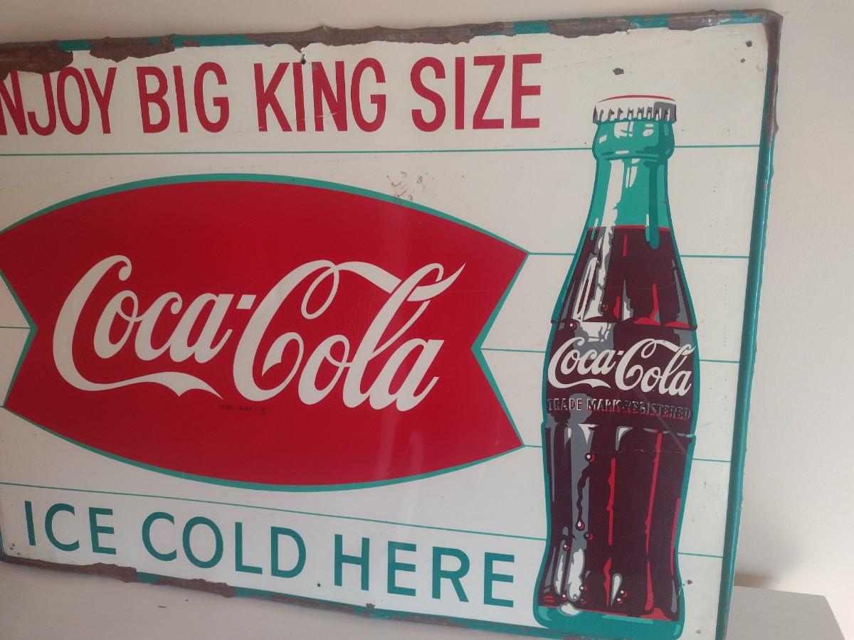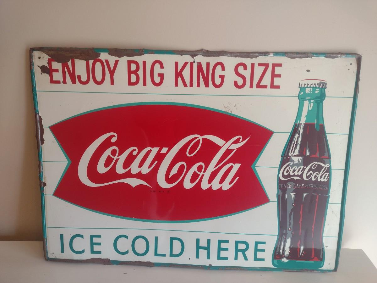 Vintage Coca-Cola Painted Metal Advertising Sign. Some paint missing as shown.