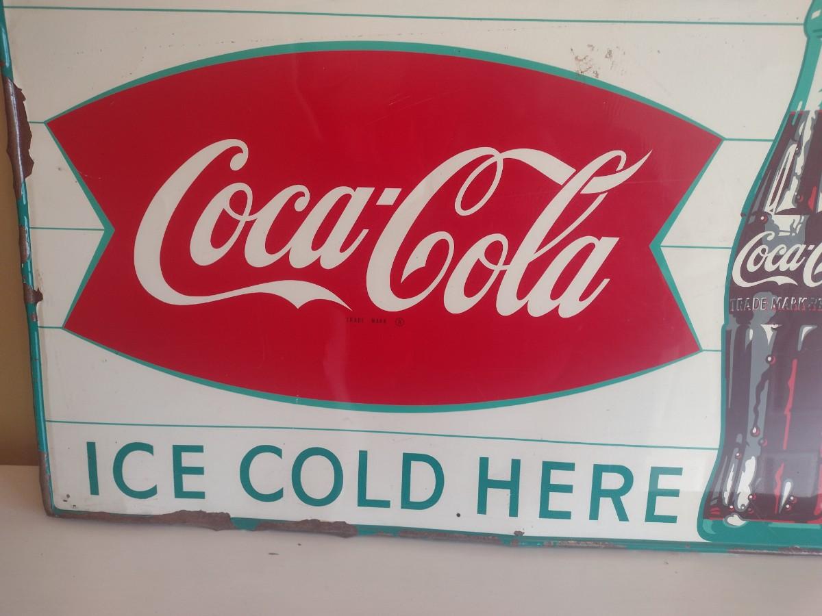 Vintage Coca-Cola Painted Metal Advertising Sign Fish Tail Logo