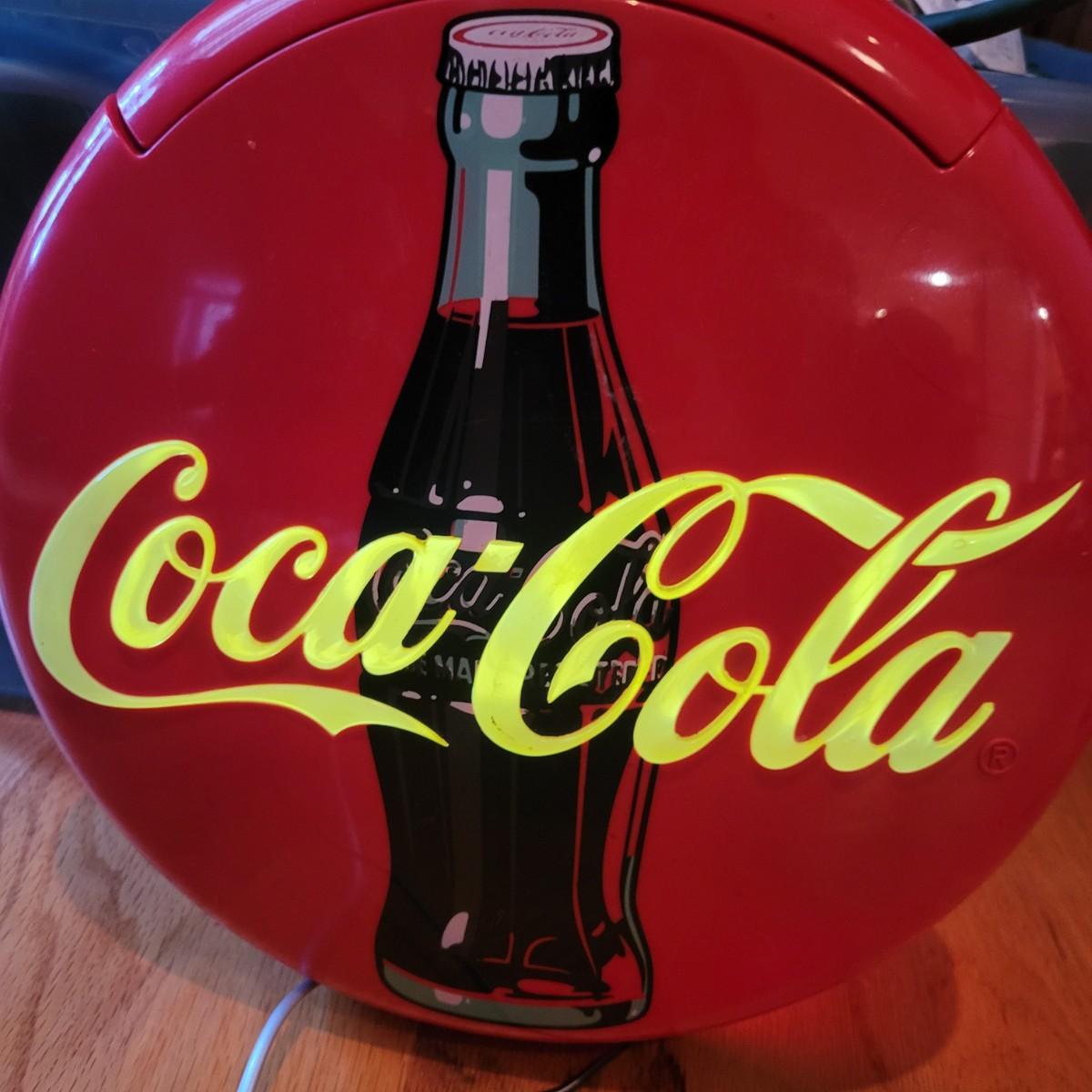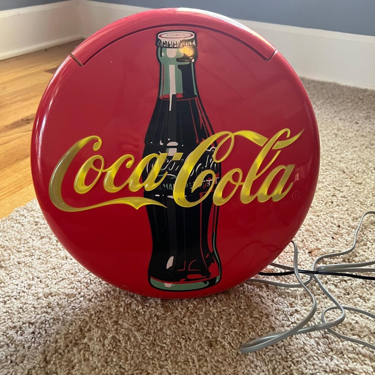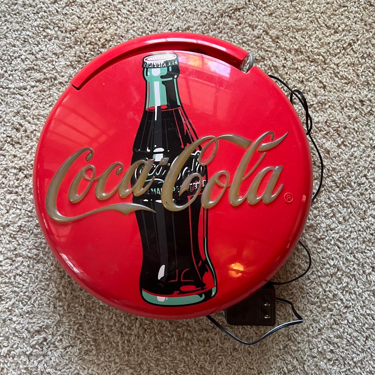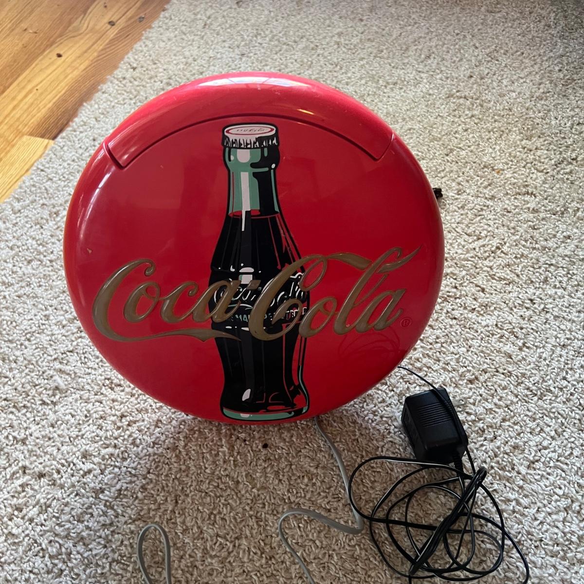 Vintage Coca-Cola telephone. The logo lights up (and can be turned off) but would be a super nightlight! The telephone is 12”D x 2”W. It can lie flat or stand up as shown in the photograph.