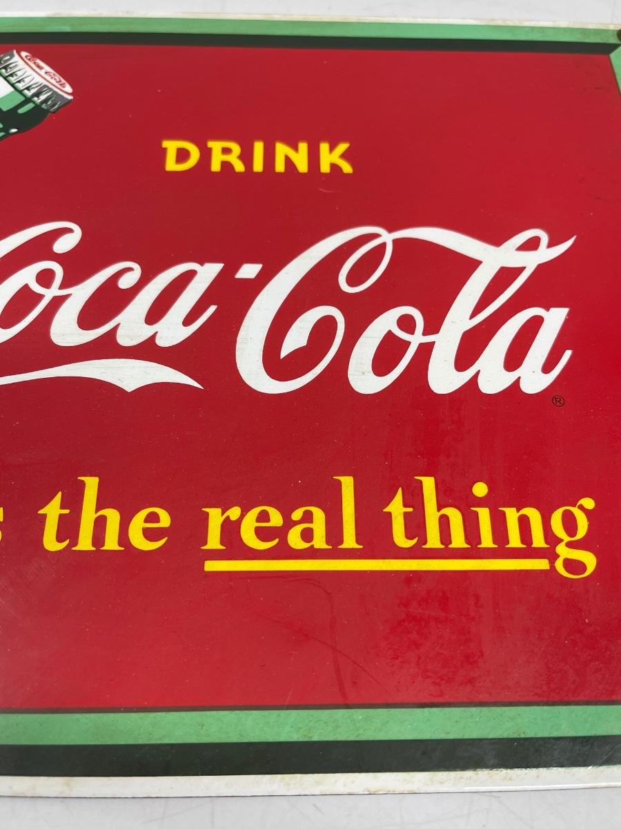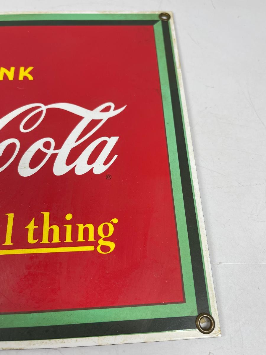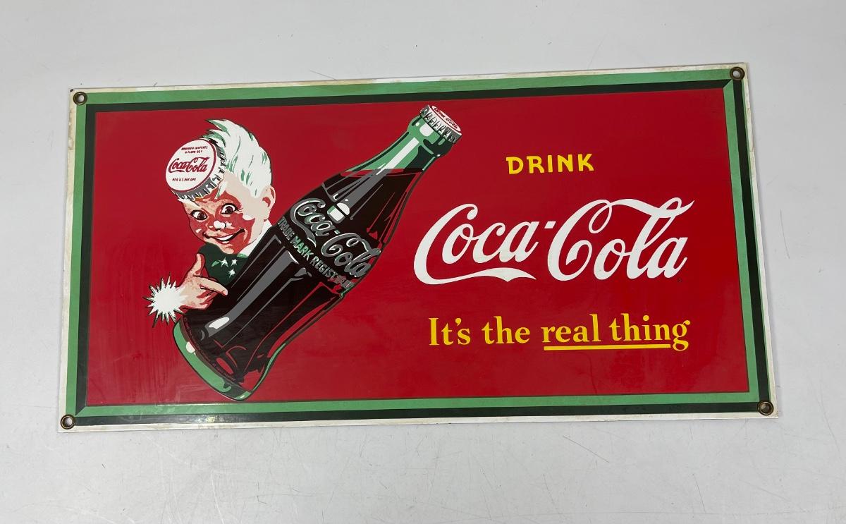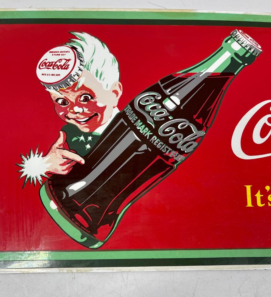 Vintage Coca-Cola Sign with Sprite Boy Holding Coke Bottle Painted Steel Rectangular Advertisement