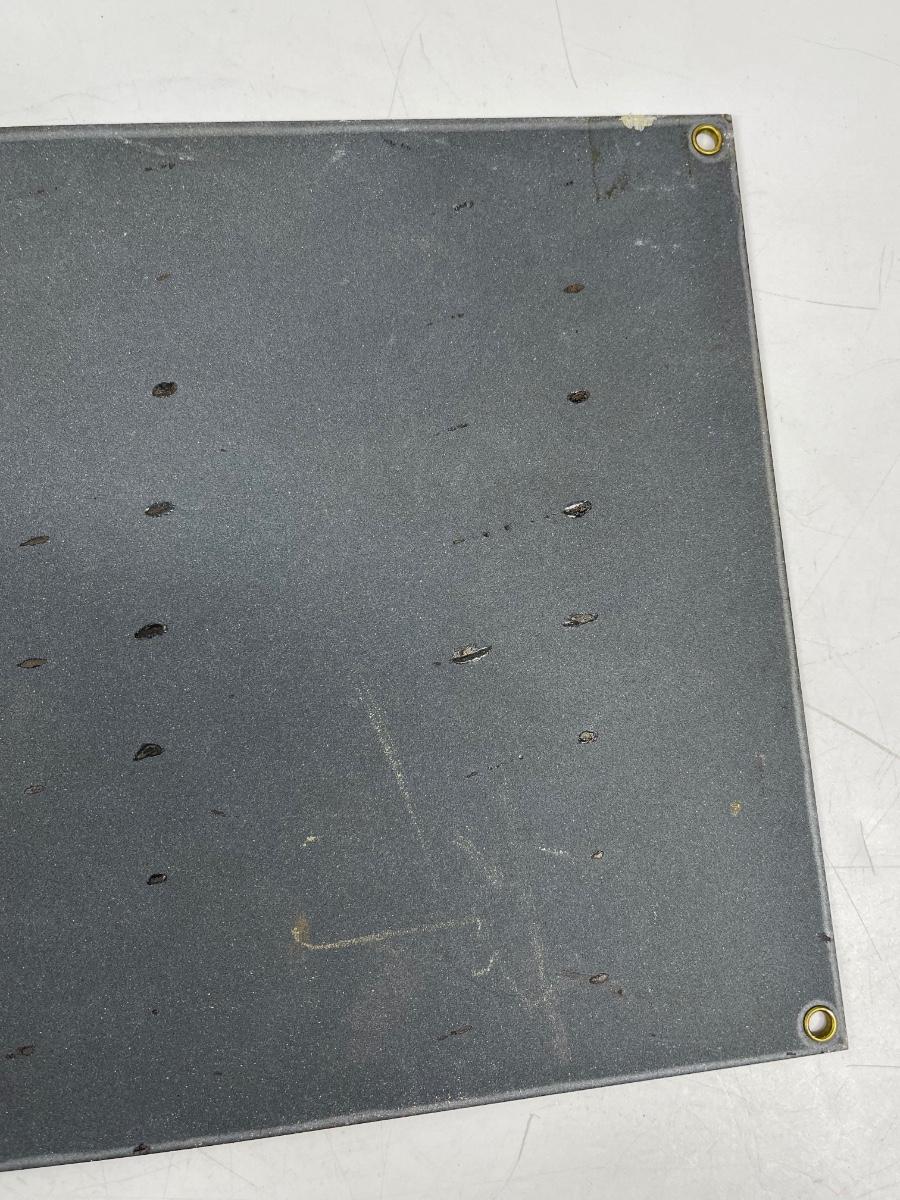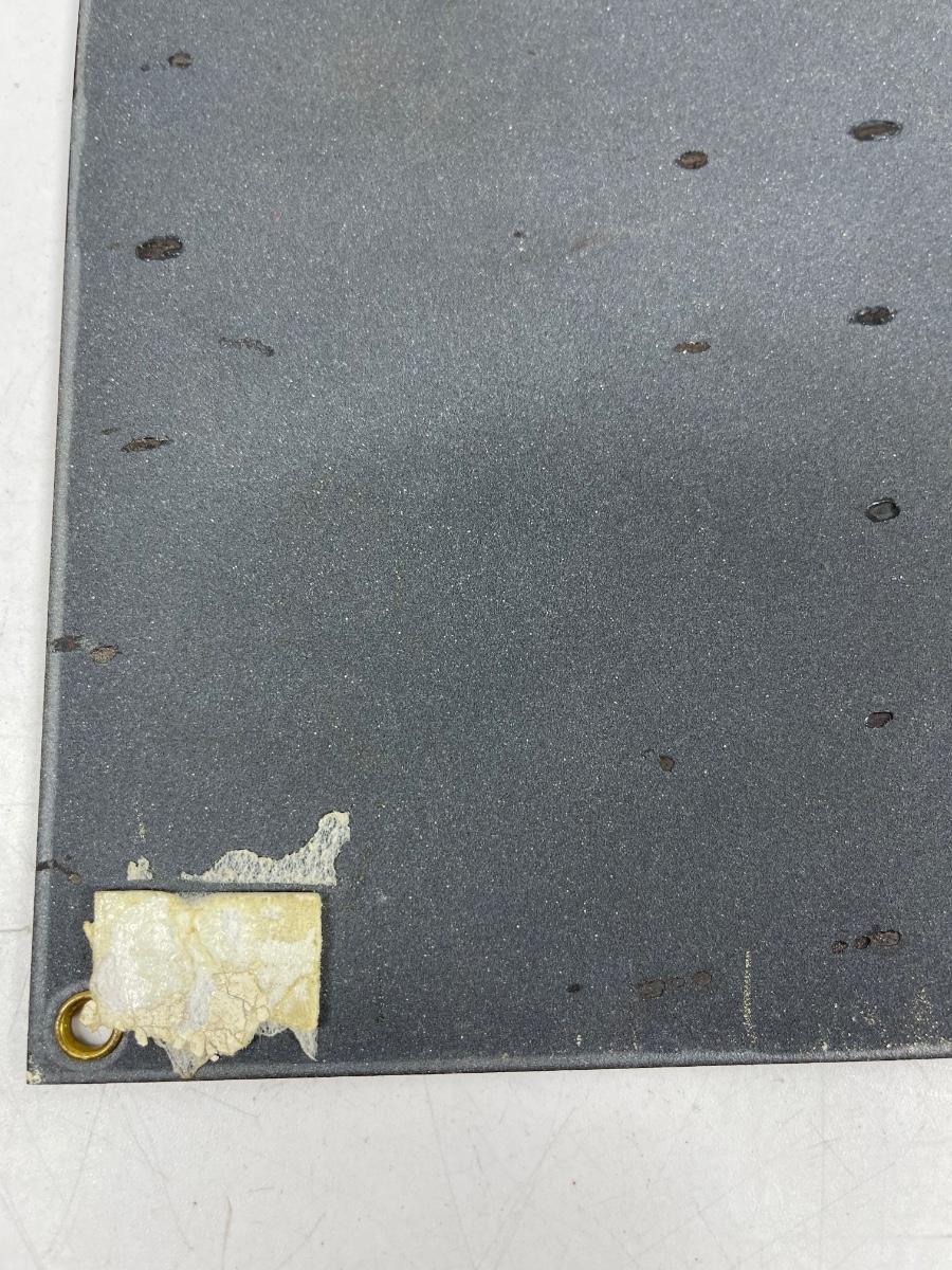 This is a heavy metal sign. It weighs 2.5 pounds and attracts a magnet. The sign features Sprite, holding a bottle of Coke. The four corner holes are grommets. It is in very good condition. We did not clean it.