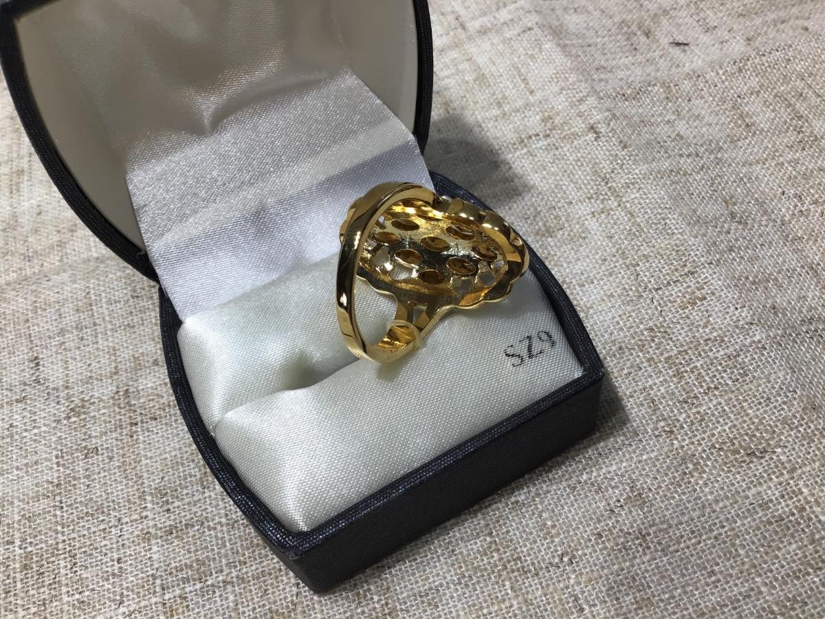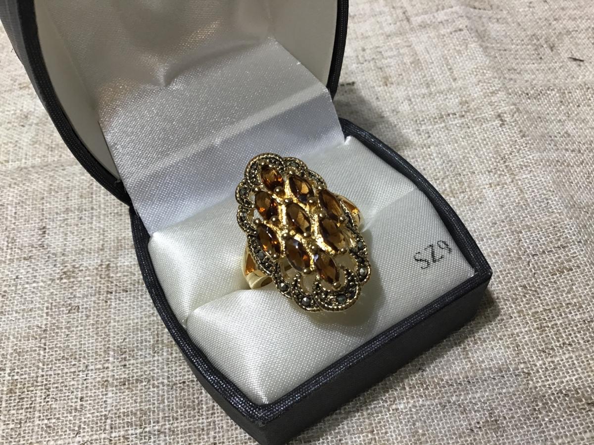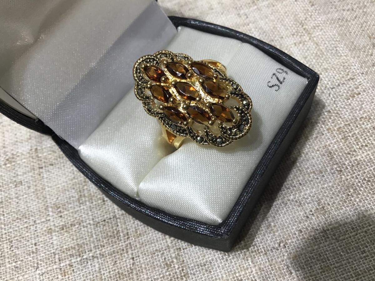 Vintage Cocktail Ring In Box Amber Stones in Gold Tone Setting