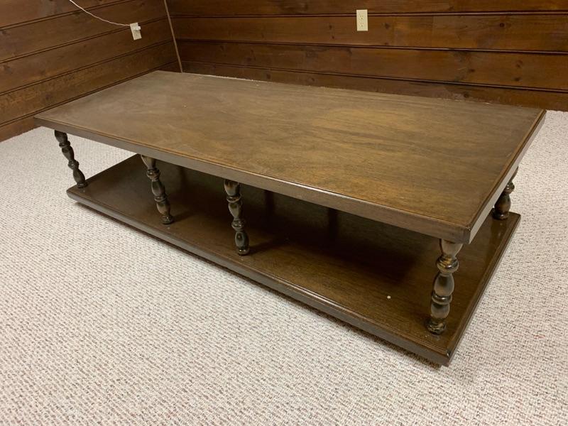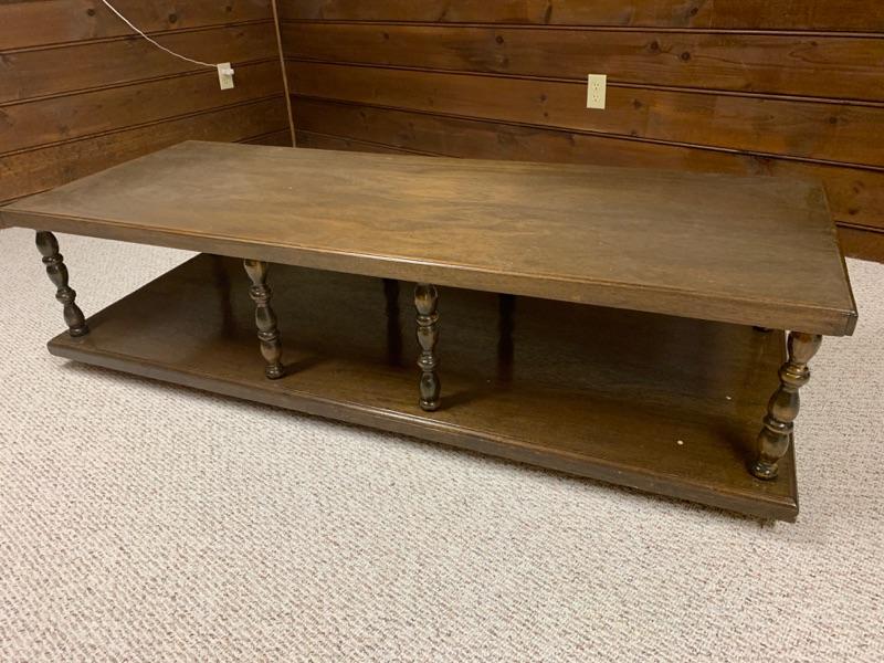 Large coffee table with lower shelf, on casters for easy moving around. 1960's-1970's vintage