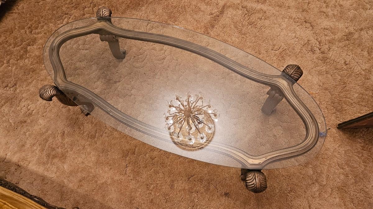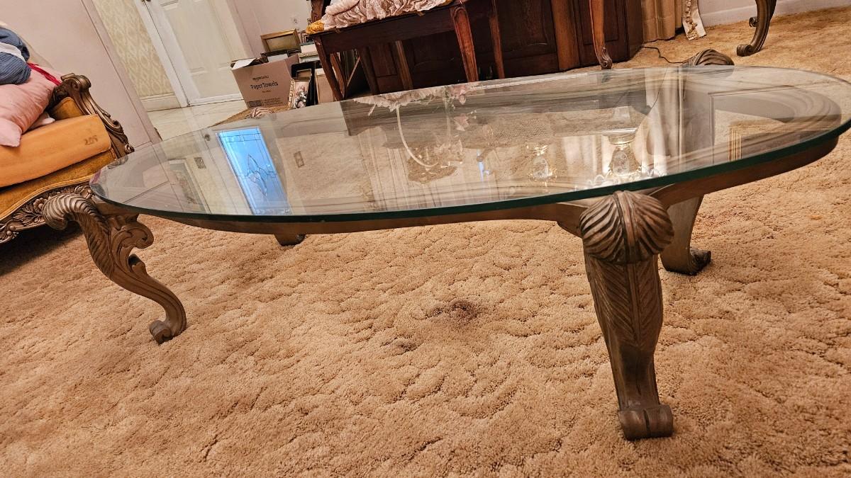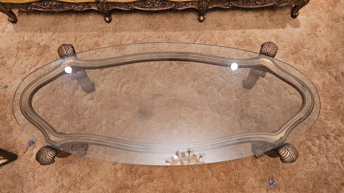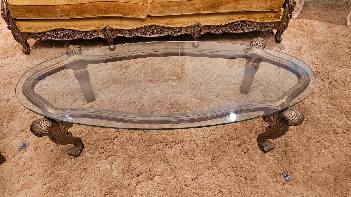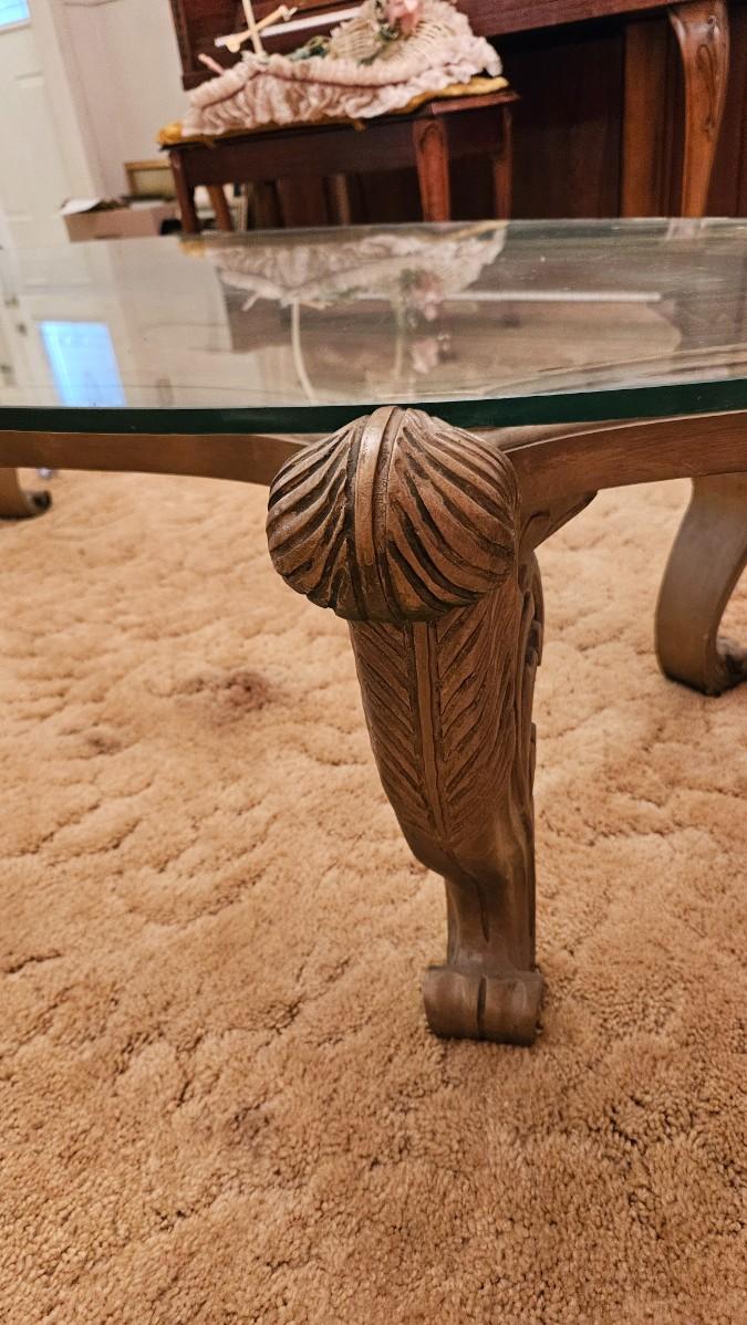 Vintage Coffee Table Carved Gold Wood Glass Top