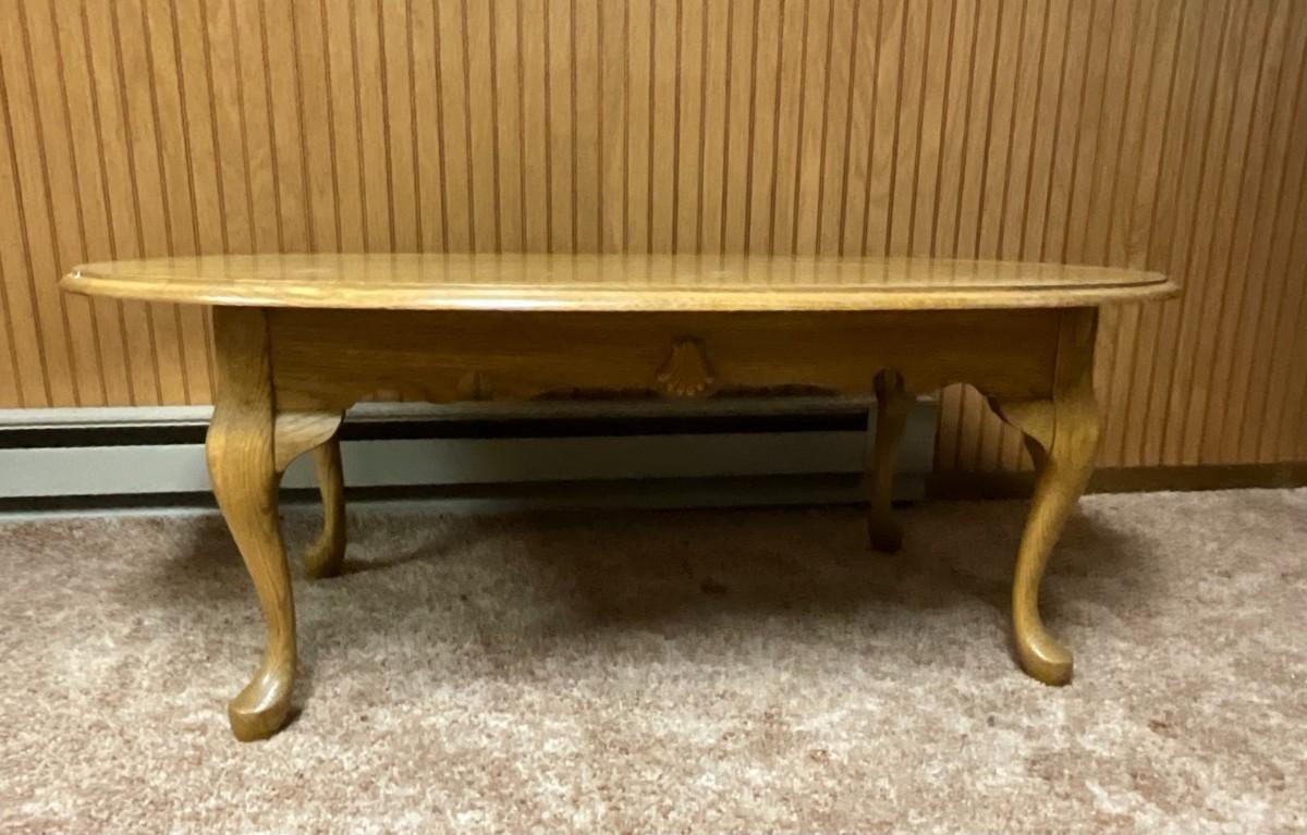 Vintage Oak Coffee Table w/front drawer, Queen Ann style legs