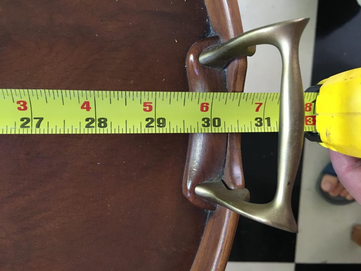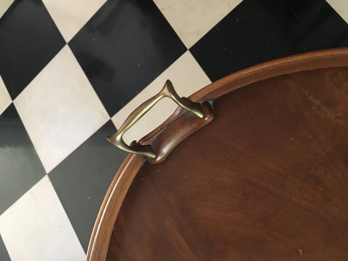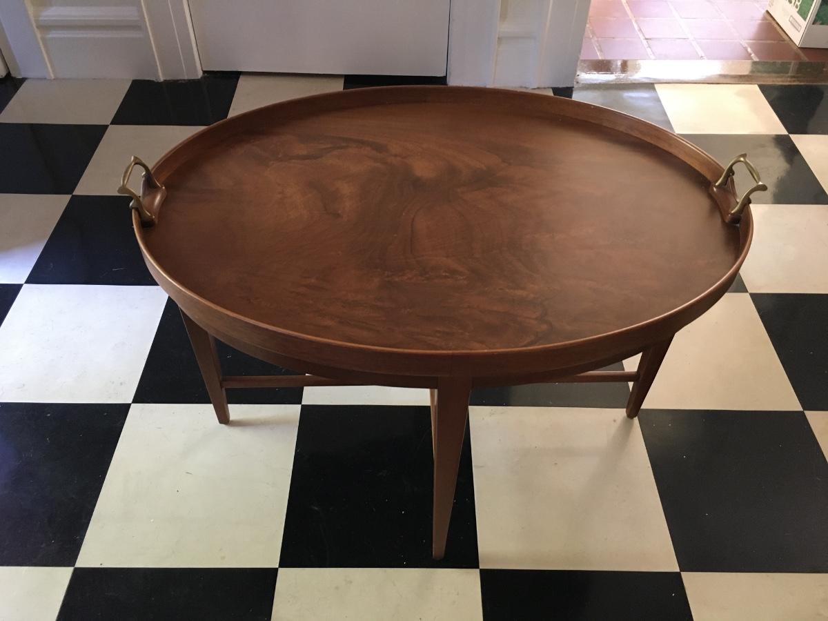 Lovely coffee/cocktail table. Has attached handles, top does not separate from base. lovely satin wood finish, brass handles