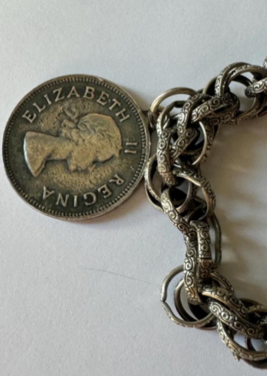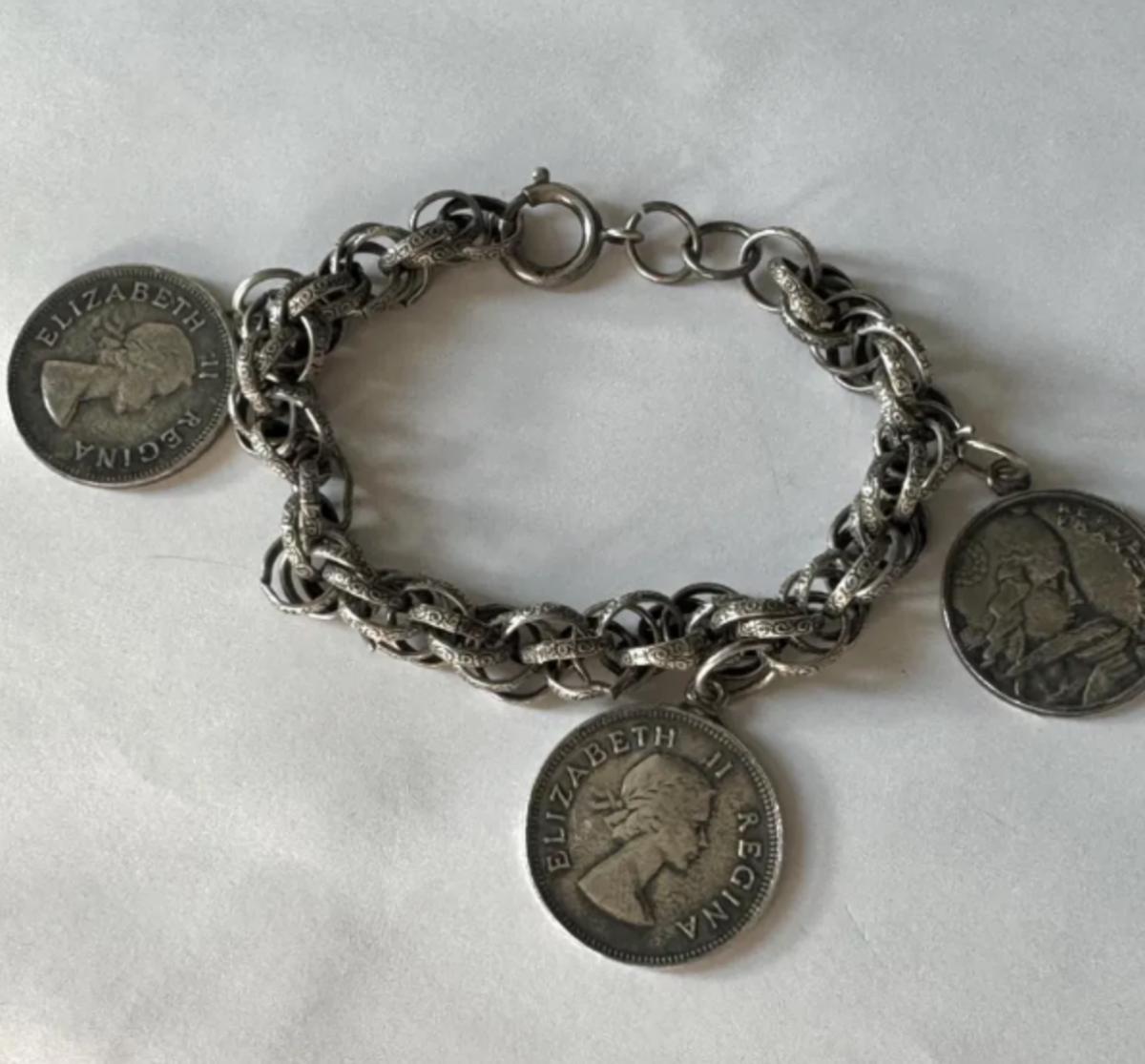 Vintage Coin Bracelet, Silver Triple Cable Bracelet Signed Germany