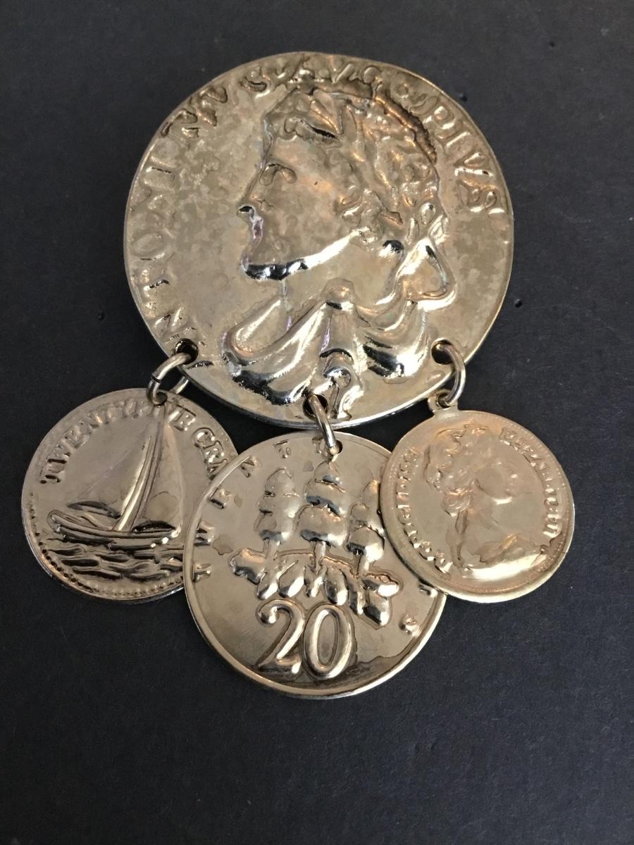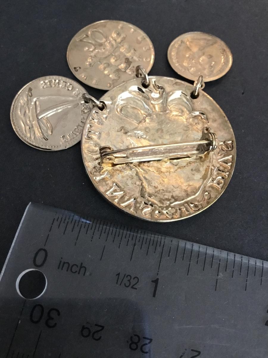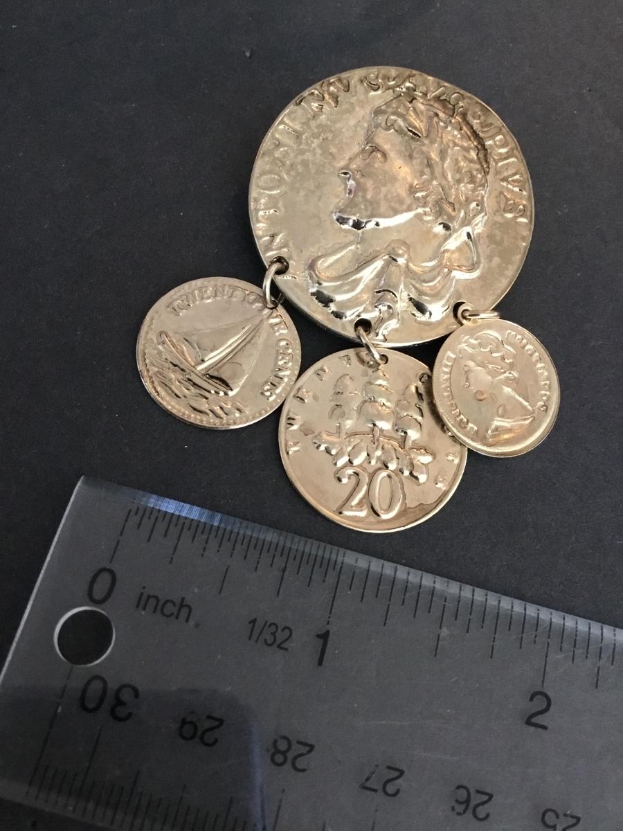 Vintage, coin, brooch, dingle, coins faux