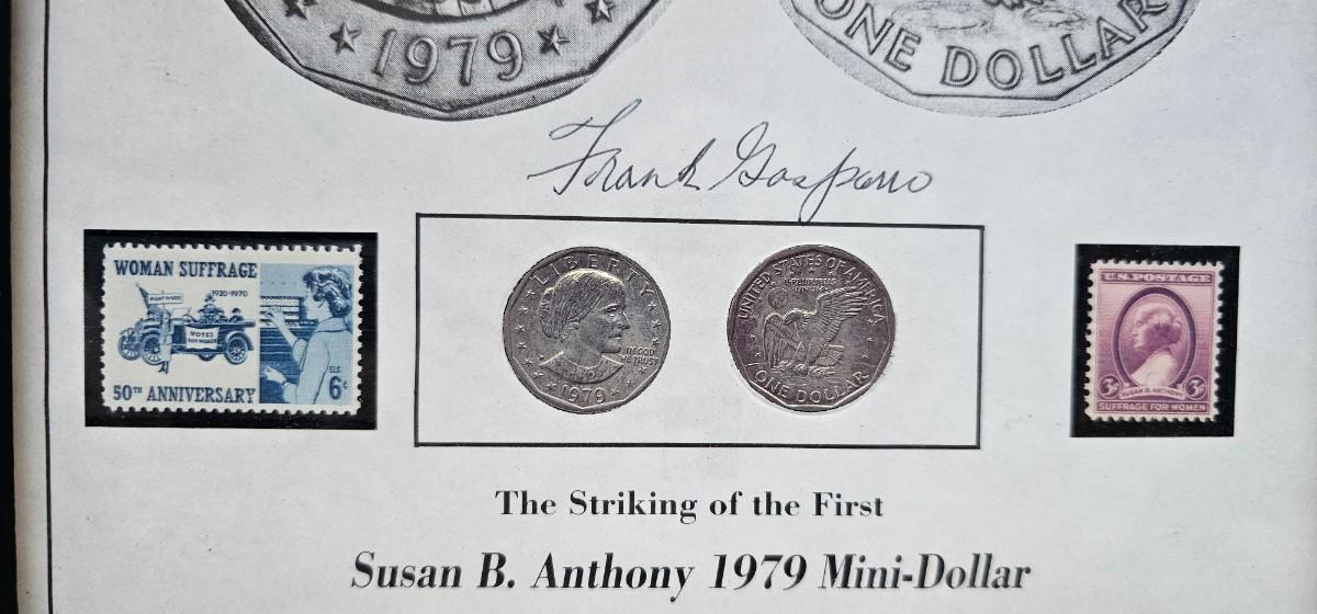 6) Framed Susan B. Anthony dollars 1978, Signed by Hackel and Gaspano