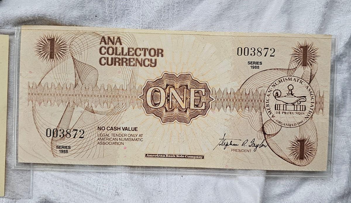 2) two Dollar Bill in plastic holder with canceled stamps 1988