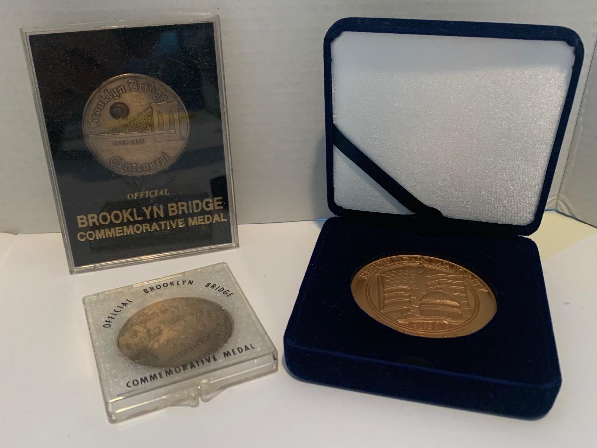 Vintage Coin / Token Lot Brooklyn Bridge Commemoratives & Republican Medal